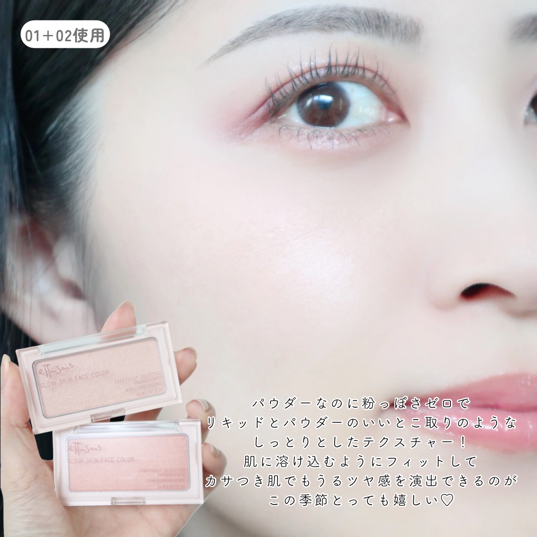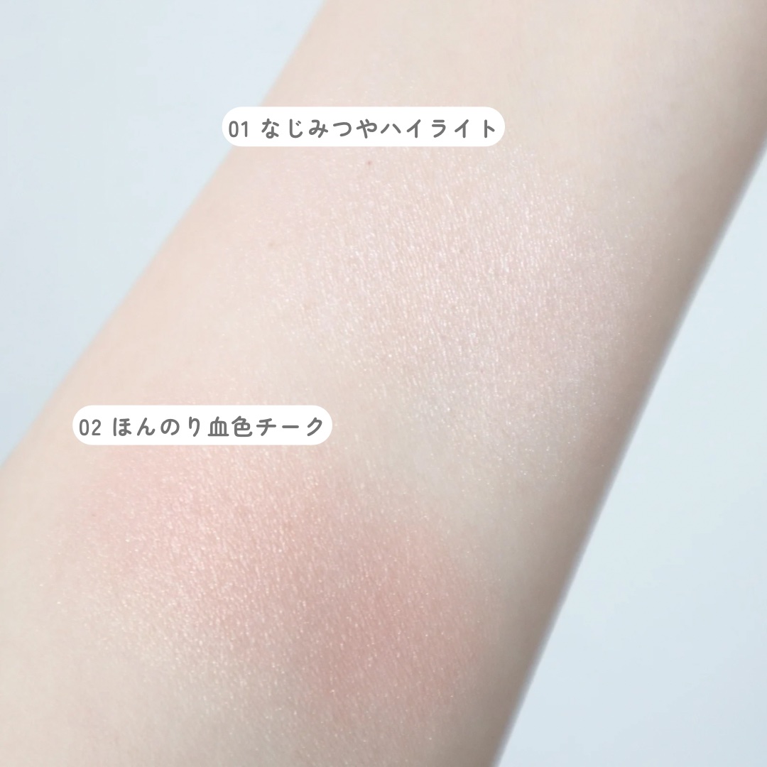 エテュセのフェイスカラー、待ってましたー!! もうね、ほんとうに使用感がよかった✨ うるおいが長時間続くスキンケア仕立てでテクスチャーだけでなく肌もしっとりが続く🫧 01 なじみつやハイライト 繊細な輝きでうるおったツヤ肌を演出 白浮しないピンクベージュ♡