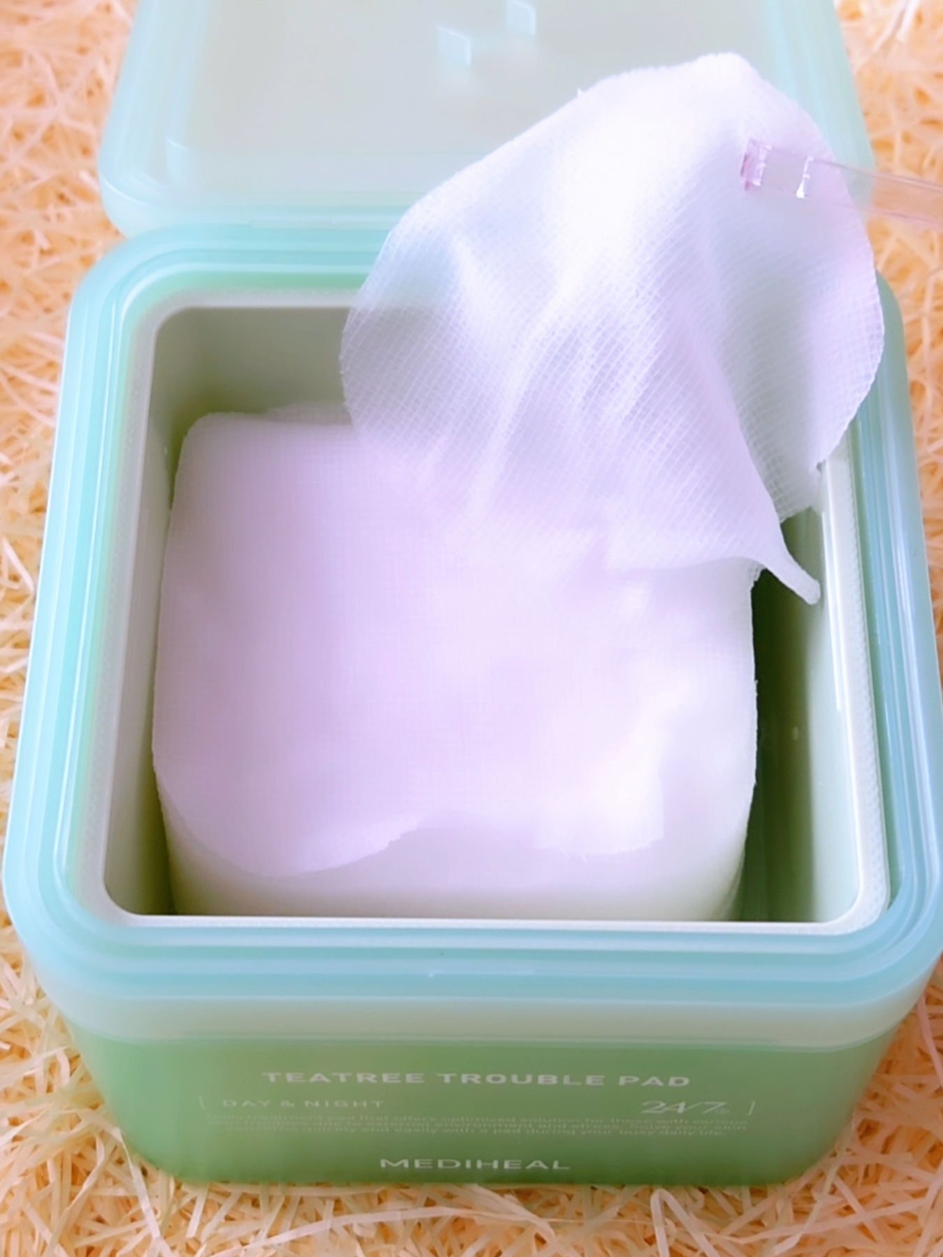 肌荒れ防止ケアエッセンスをたっぷり含んだ、ガーゼ素材のパッドでなめらかな肌へとケアします。 済州島ティーツリーに乳酸菌を加え、200時間抽出したティーツリーカーミングバイオーム配合。 さっぱりした使用感、ベタつかずしっとり🌿67mmスクエアパッド、大きめでお肌にぴったり密着します。