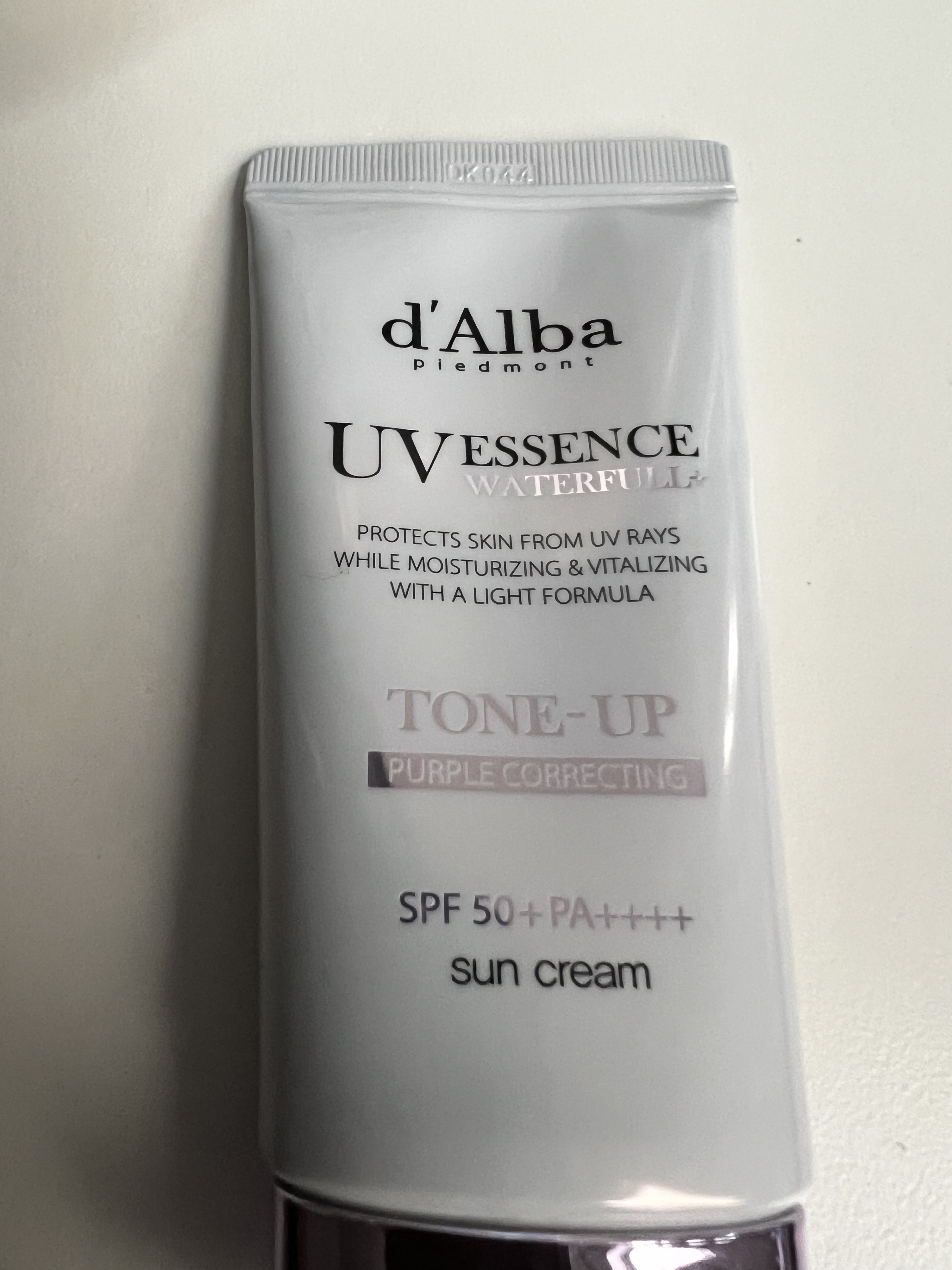 ダルバダルバウォータフルトーンアップサンクリームパープル¥2,860✼••┈┈••✼••┈┈••✼••┈┈••✼••┈┈••✼テクスチャーはみずみずしく伸びがいいです香りは精油のような香りがします左半分に塗りましたパープルの下地でトーンアップ...