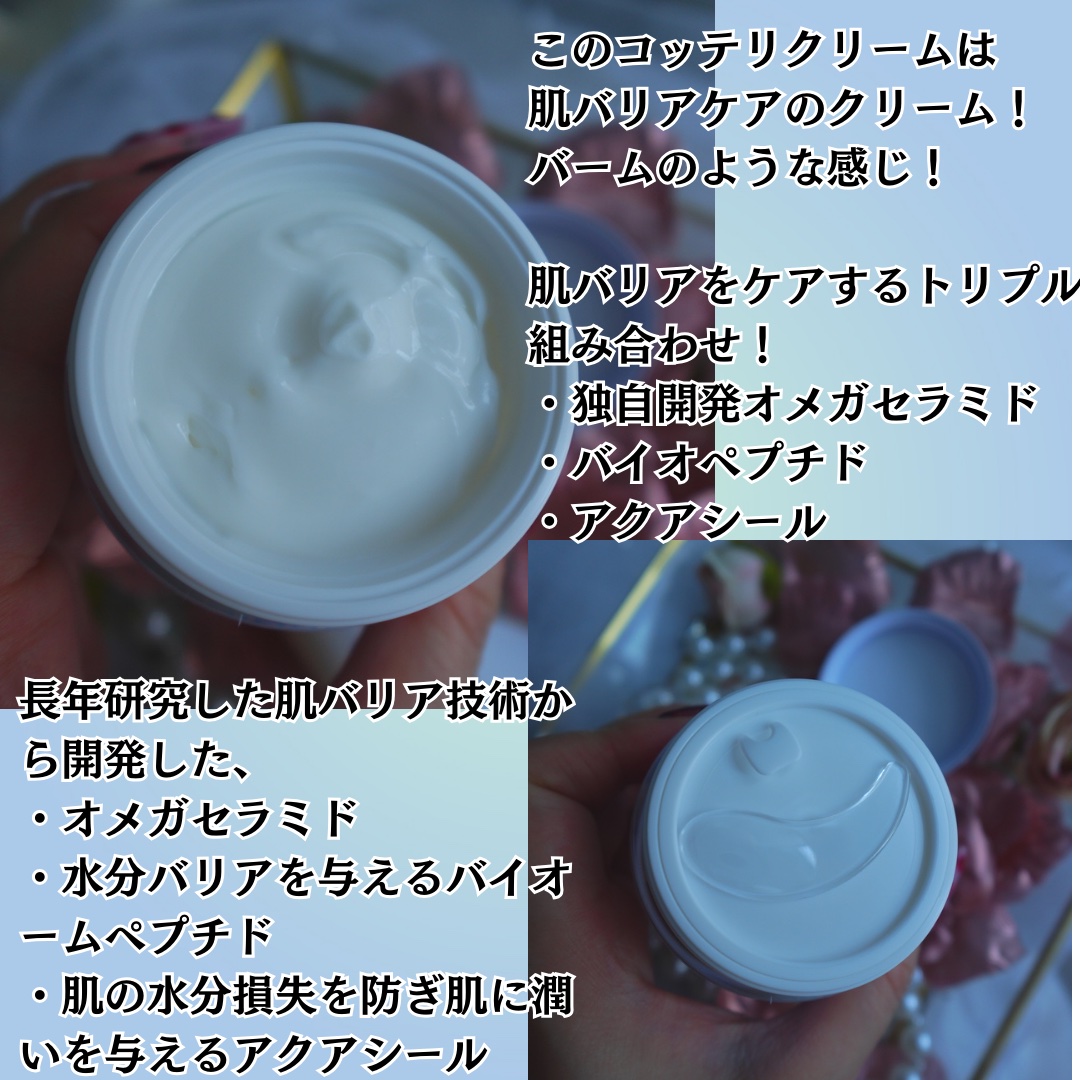 レチノール配合で色んな毛穴をケアできる! 低刺激だから敏感肌さんでも使える! 保湿成分も配合だから水分蒸発を防ぎしっとりした肌に導いてくれるよ! 独自成分オメガセラミド配合! 肌バリアをケアしてくれるクリーム! バームタイプでこってりしたテクスチャー肌にのせると伸ばしやすくなじみも良いよ!