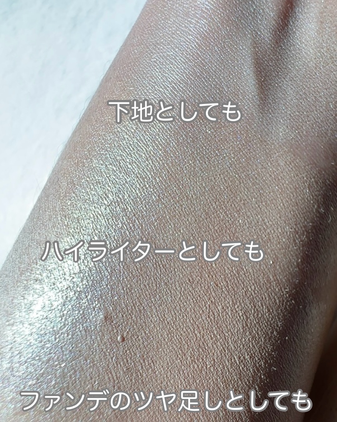 1本で3役こなしてくれる ウォータータイプのハイライト✨ 私は001の明るめのタイプを手に取りました ツヤ感が出て煌めきがありましたが 上からファンデーションをすると隠れてしまったように見受けられました😢 ナチュラルにツヤ感を求めている方や 浮かない色合いを求めている方には良いコスメなのかなと思います😶
