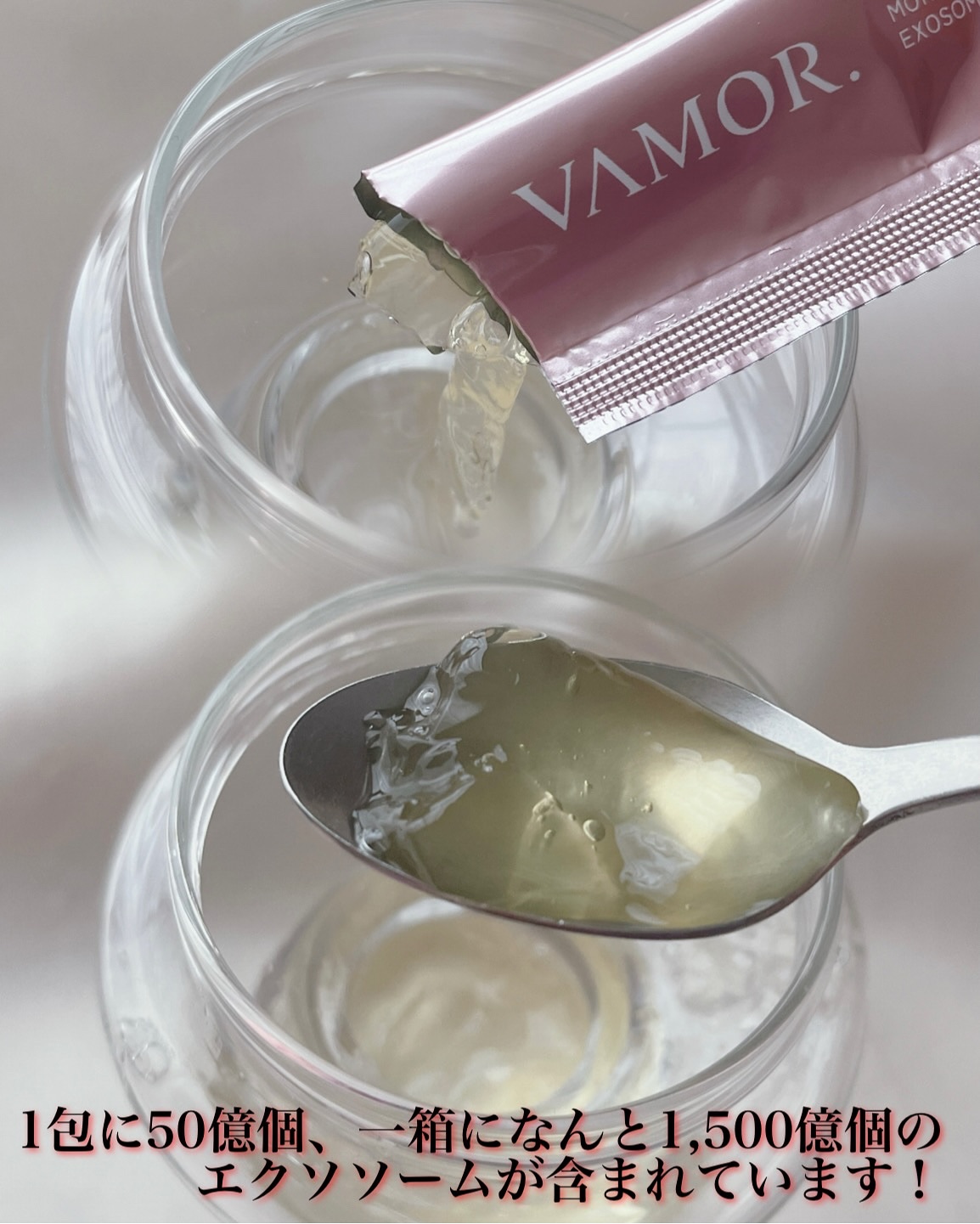 「美味しいエクソソーム」ゼリー。 植物由来エクソソームや、厳選成分を配合したうるおうフェムケア習慣を支えるゼリーなんだって! VAMORのゼリーはめっちゃ美味しい🤣💗 色鮮やかなワインレッドで、ぷるっとしたなめらかな食感。 最近、肌がカサついてたからインナーケアできて嬉しいな♡