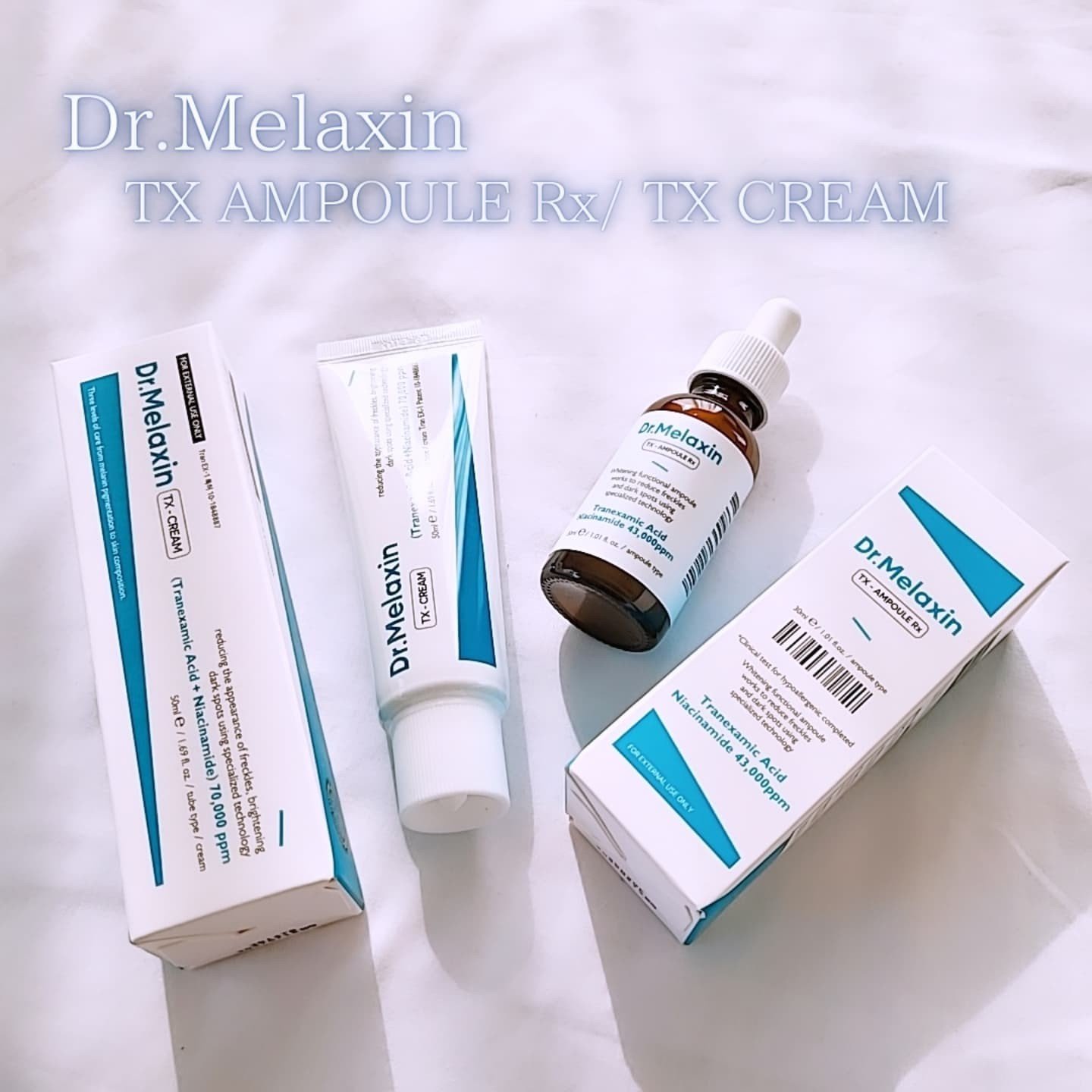 シミの飲み薬や注射に使用されるトラネキサム酸配合のスキンケアライン⭐︎ アンプルはナノトラネキサム酸、ナイアシンアミド 8.6%配合。 ドクターメラクチンだけのリポソーム化したナノトラネキサム酸でより浸透しやすくなっているそう✨ べたつかないさらっとテクスチャーだから季節を問わず年中使用可能だよ◎