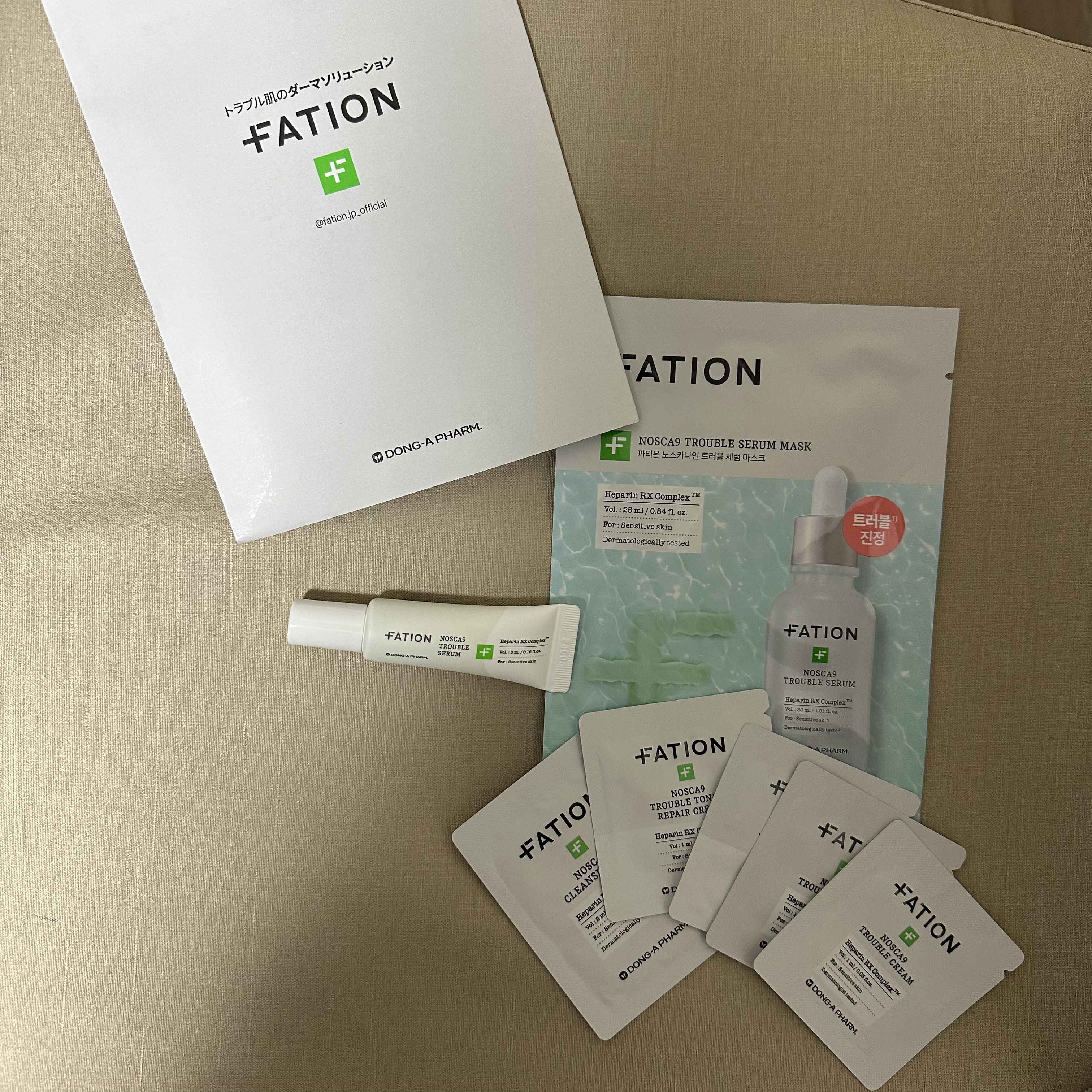 生シカ(生ツボクサ葉エキス)配合のFATIONのスキンケアを使ってみたよ〜!!⏩肌にハリを与え、肌荒れを防ぐ『ノスカナイントラブルセラムS』テカリが気になる肌の皮脂バランスを整えてくれる効果もあるんだって😊うるおい成分も配合されているそうだか...