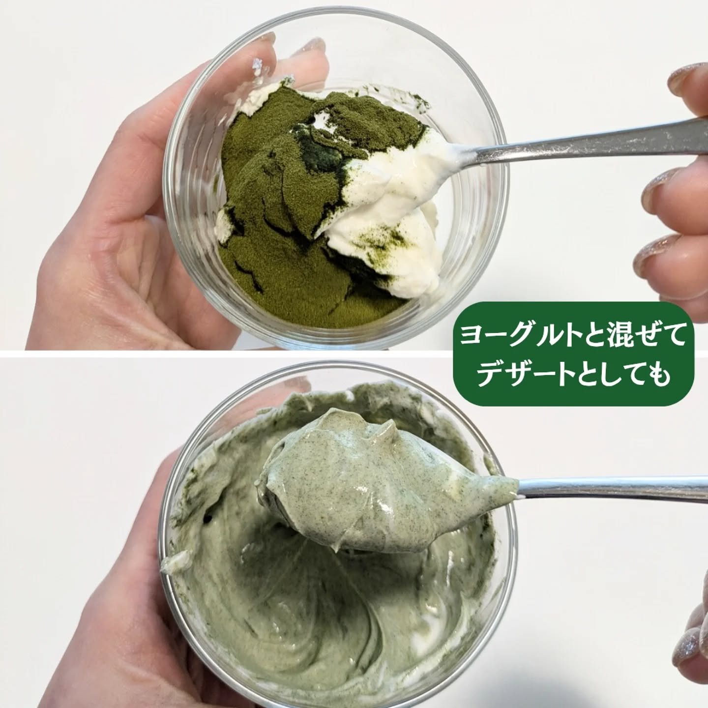 有機抹茶、有機大麦若葉、小麦若葉、有機緑茶、クロレラ、羅漢果、スピルリナ、シャンピニオン、有機モリンガ、ブロッコリースプラウト、有機ケール、植物性乳酸菌、フラクトオリゴ糖の13種類の原料をブレンドしてて、クレンズ効果が期待できるんだとか😳! 抗酸化作用で有名なブロッコリースプラウトが入ってるのがよくてトライしてみたんだけど、水のみでスッキリ飲みやすくてびっくり!! おすすめはアップルジュースに混ぜてのむことと、バナナヨーグルトにかけて食べること💖
