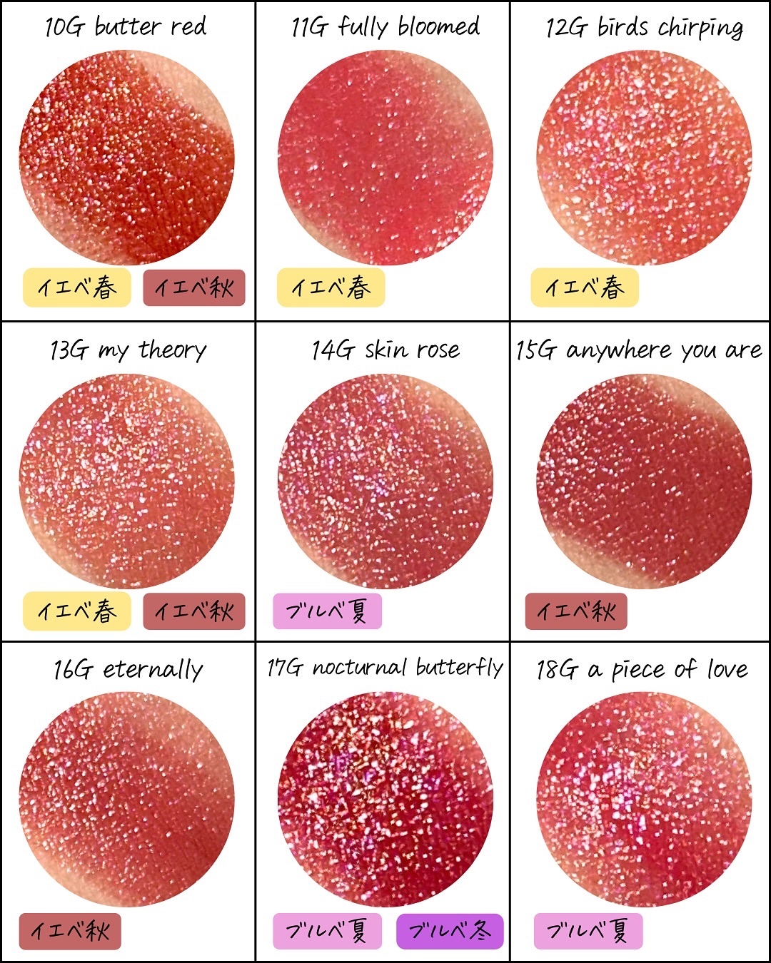 つけたてのときめきと色ツヤが続くルージュ。光の反射をコントロールするクリアグロウパウダーが、にごりのないツヤ膜とクリアな発色を叶え、まるで“朝霧”のように澄み切ったツヤリップを叶えてくれます🥺 潤いを閉じ込めた上質なオイルが唇の温度でやわらかにとろけ、唇を包み込むようにフィットしながら“むっちり”とした弾力感を叶えてくれます! 限定色含む全12色をレビューしました!