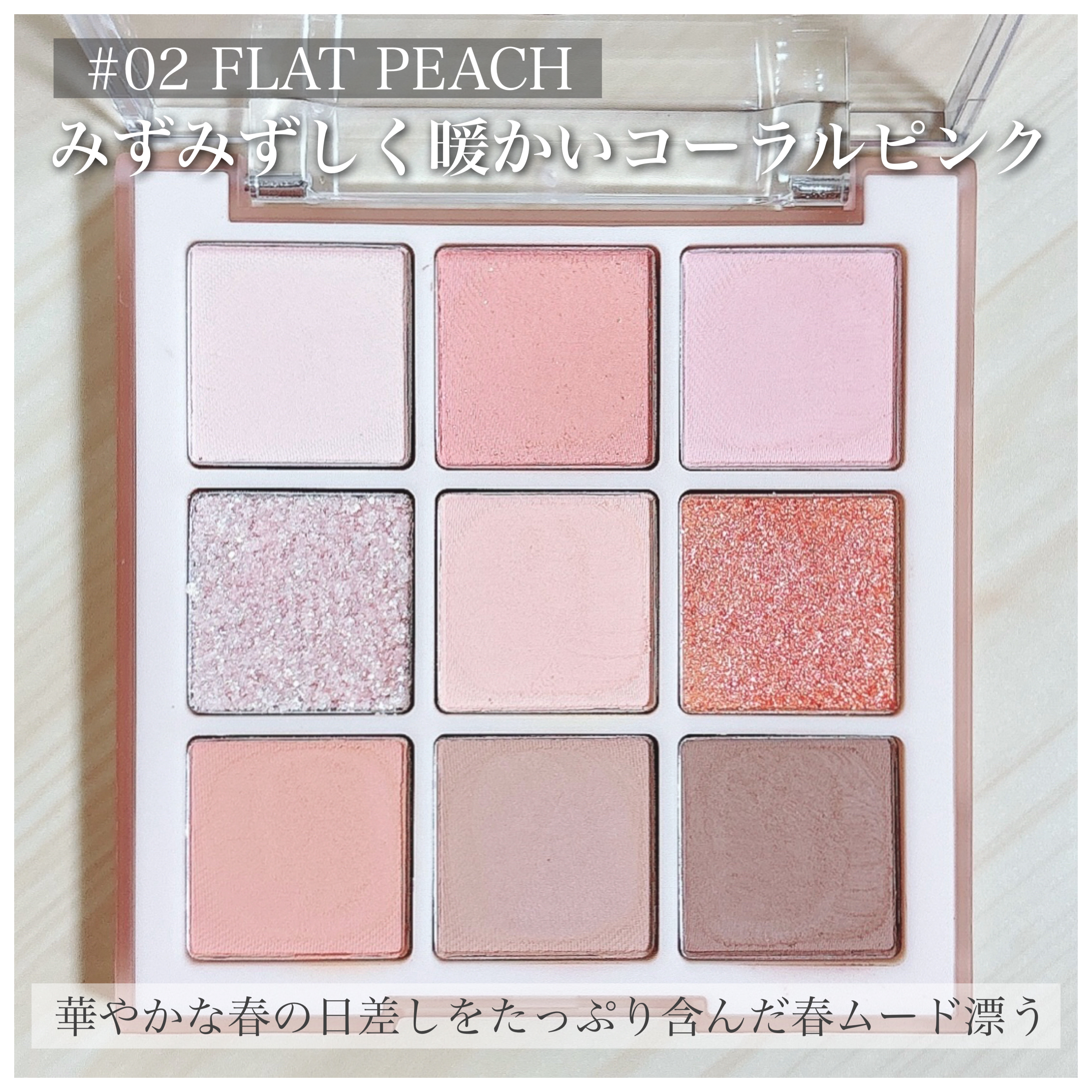 肌馴染み抜群なピーチ&ベージュ&コーラル系アイシャドウパレット🩷 王道のナチュラルベージュパレット お仕事メイクにもナチュラルメイクにもぴったり 全色ラメ入りのキラッキラなパレット 大小様々&色んなカラーのラメを楽しめる