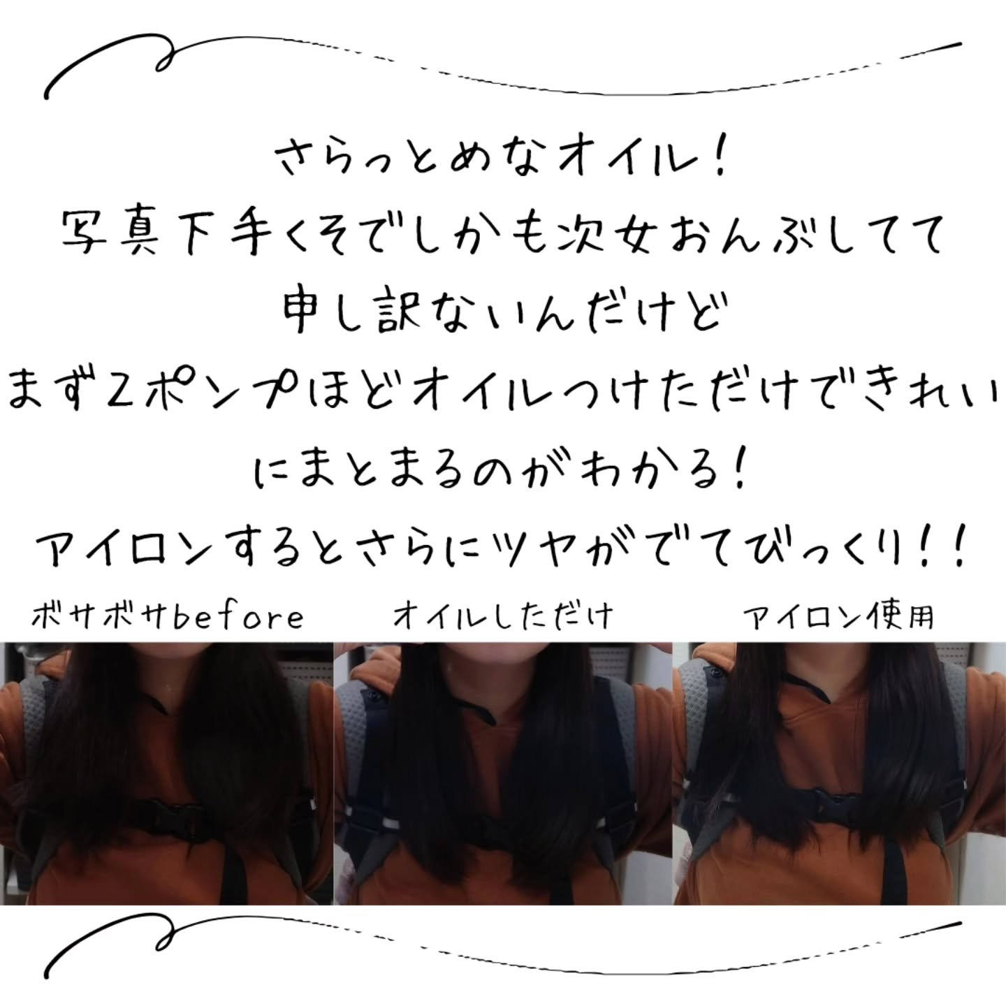 | ヘアケア・スタイリングランキング第23位 | いいオイル!ブリーチで傷んでる髪もまとまってくれる♡指通りサラサラ♡ | 詳細を見る | |