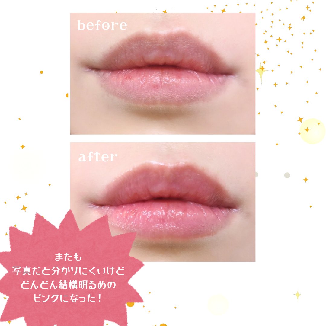なめらかにとろける高発色リップバーム唇にうるおいを与え、あれ・乾燥を防ぐ 肌の温度によって自然に発色するカラーなんだそう。見た目は黄色ですが、唇にのせるとほんのりピンク色に。 つやめく美発色リップバームリップケアしながら血色感アップ※唇にうるおいを与え、あれ・乾燥を防ぐ