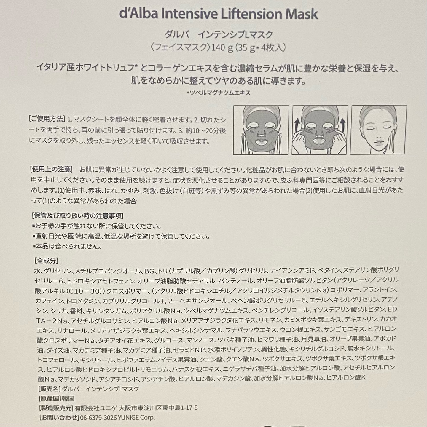 商品詳細情報ダルバ インテンシブリフテンションマスク