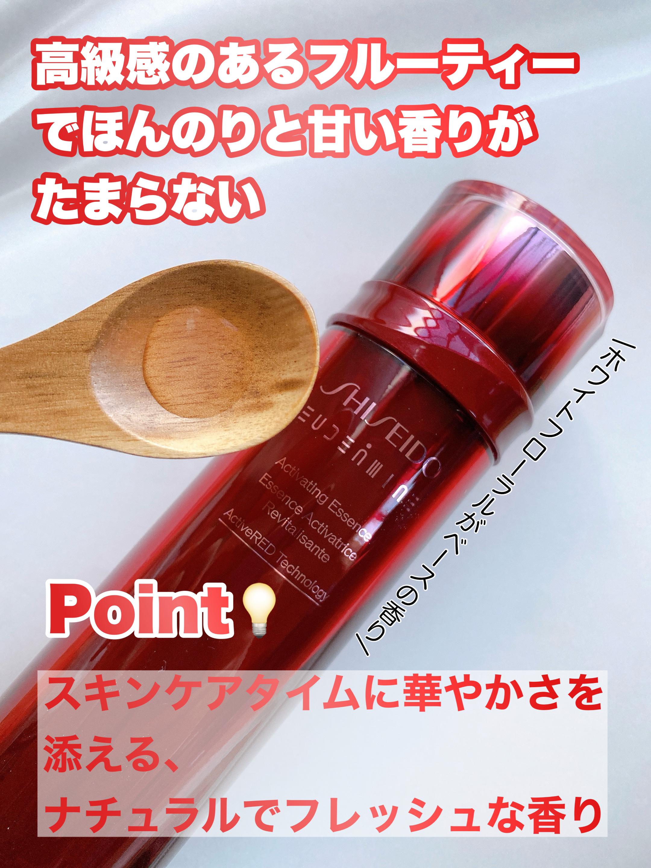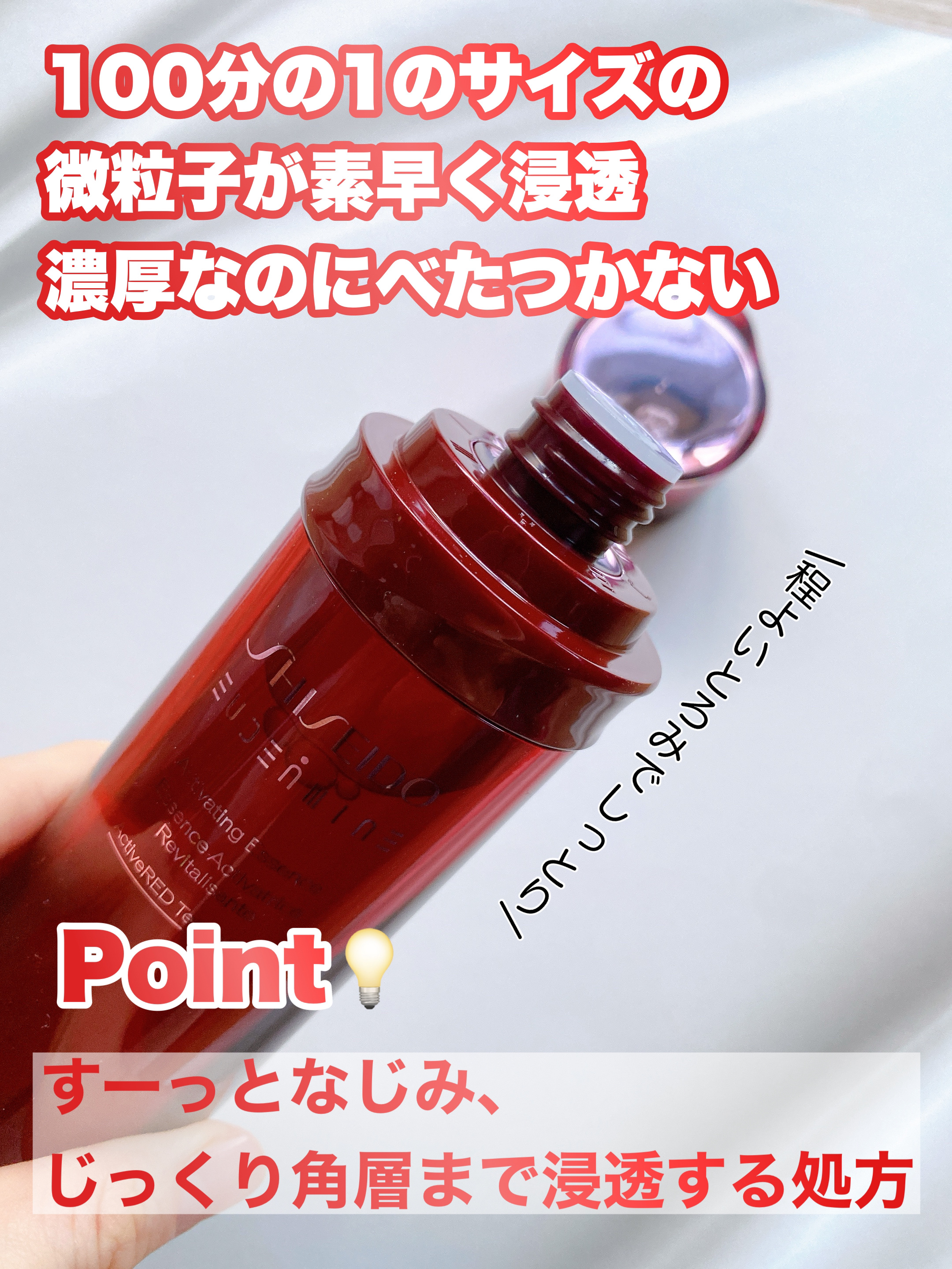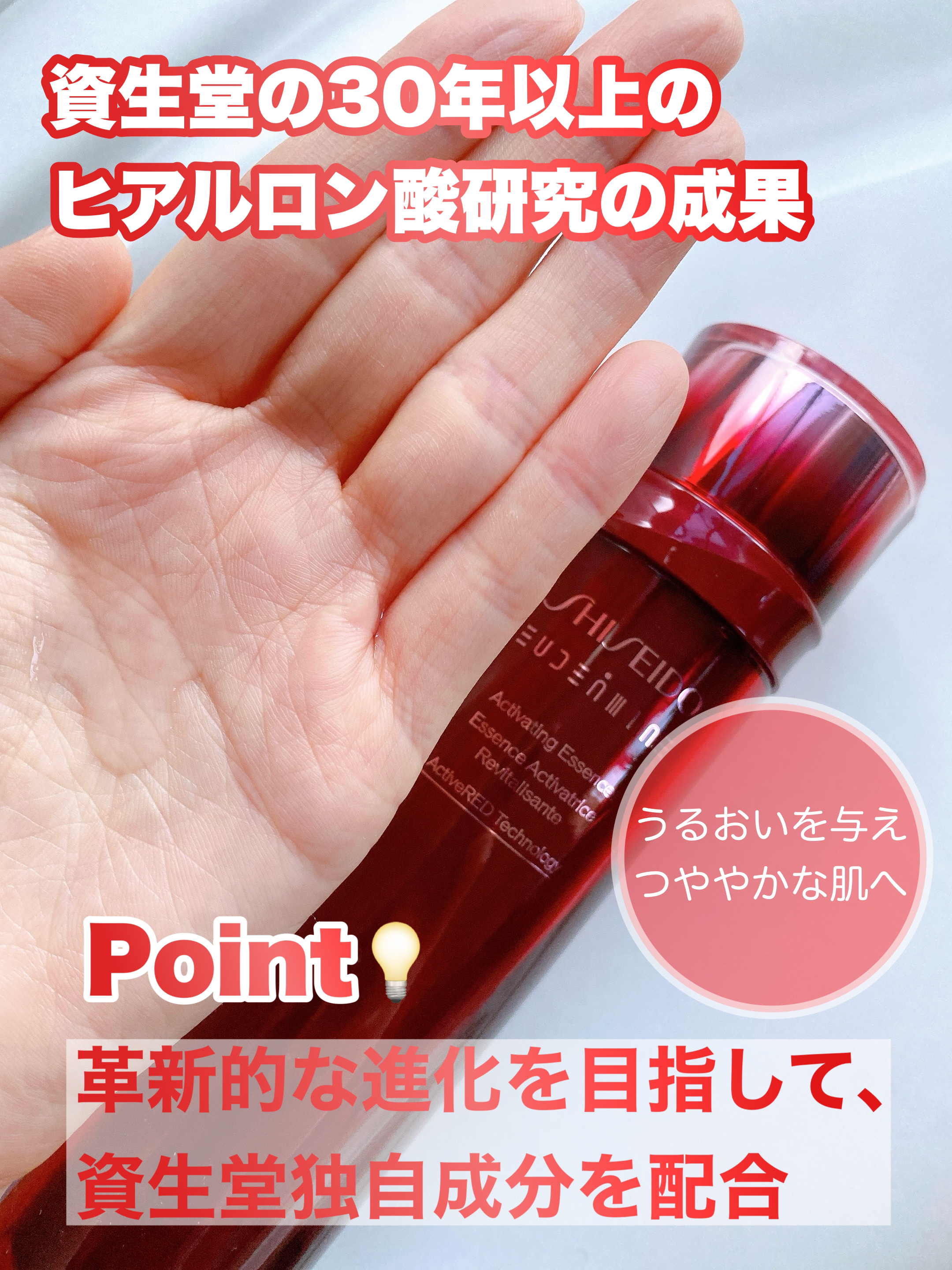 うるおって生命感あふれる「つややかで彩 あざやかな肌」へ導く高機能エッセンスローション。 SHISEIDOが考える美肌の3大要素「透明感あふれる輝き」「ハリ・弾力」「なめらかさ」が整った状態に導きます。 まるで美容液のようなとろみのあるテクスチャー。肌なじみがよく、ベタつかずしっとりとした使用感。