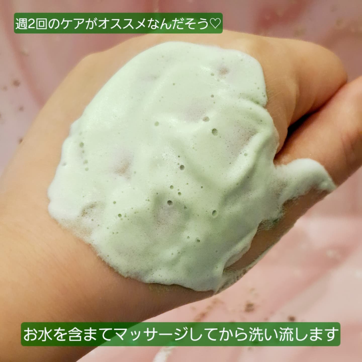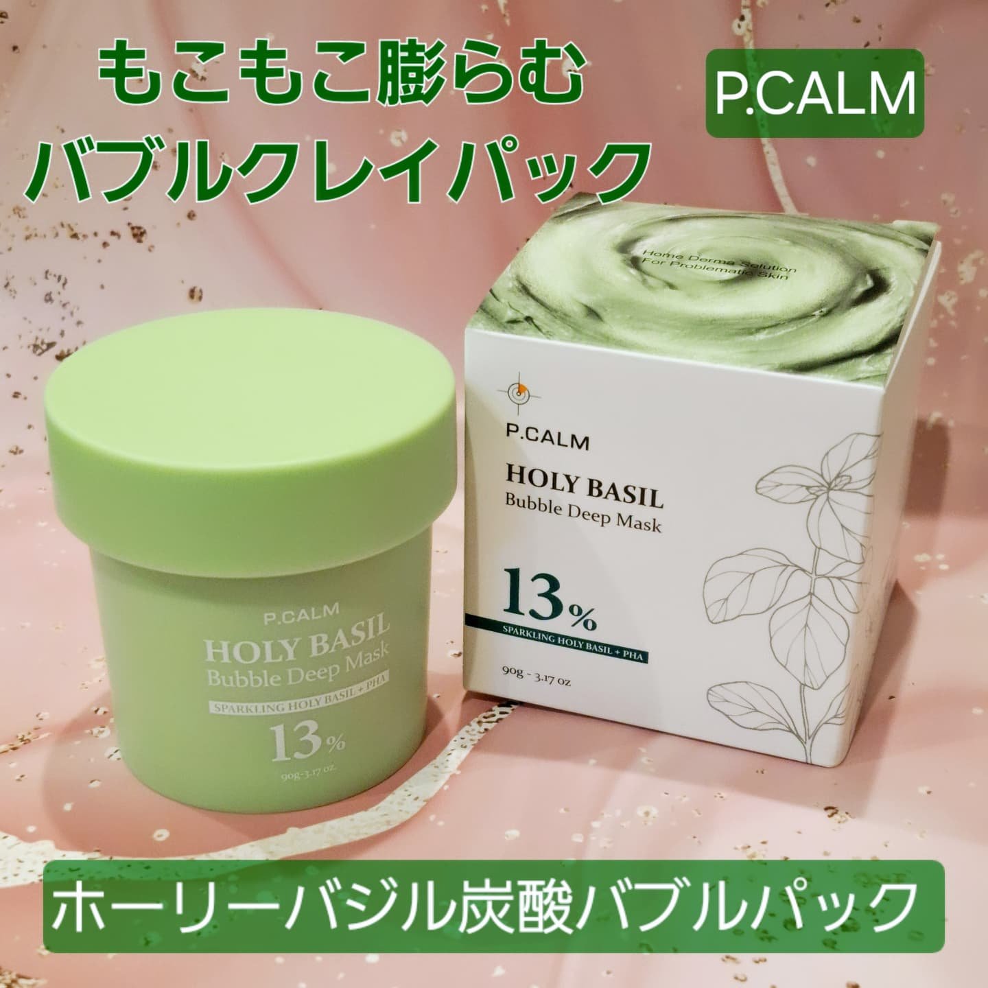 新感覚の毛穴パックだ!!! PCALM ホーリーバジル炭酸バブルパック このジャータイプに入っていて蓋を開けると緑色したパック! 取り出して肌に乗せると最初はやわらかめのパックなんだけど伸ばしてしばらくすると白っぽくなってシュワシュワと!! 週に2回ほどの使用がオススメだそう♡