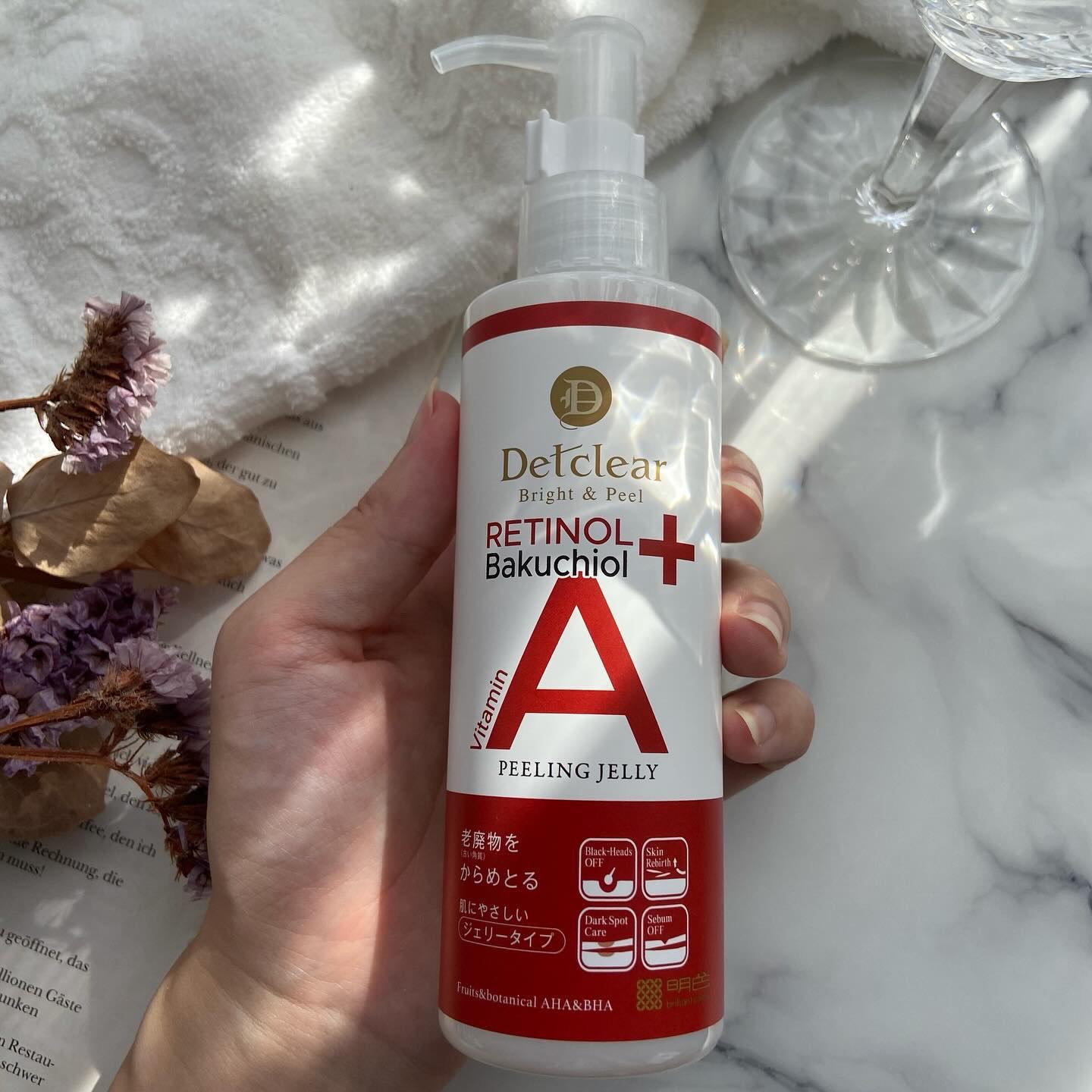 DETクリア ブライト&ピール ピーリングジェリー エイジングケアタイプは、レチノール&バクチオール配合のピーリング。 角質ケアだけでなく年齢肌にもアプローチし、ハリツヤそして弾力のあるお肌に導いてくれます💘 濡れた手でも使えるから、お風呂でのケアにピッタリ❣️