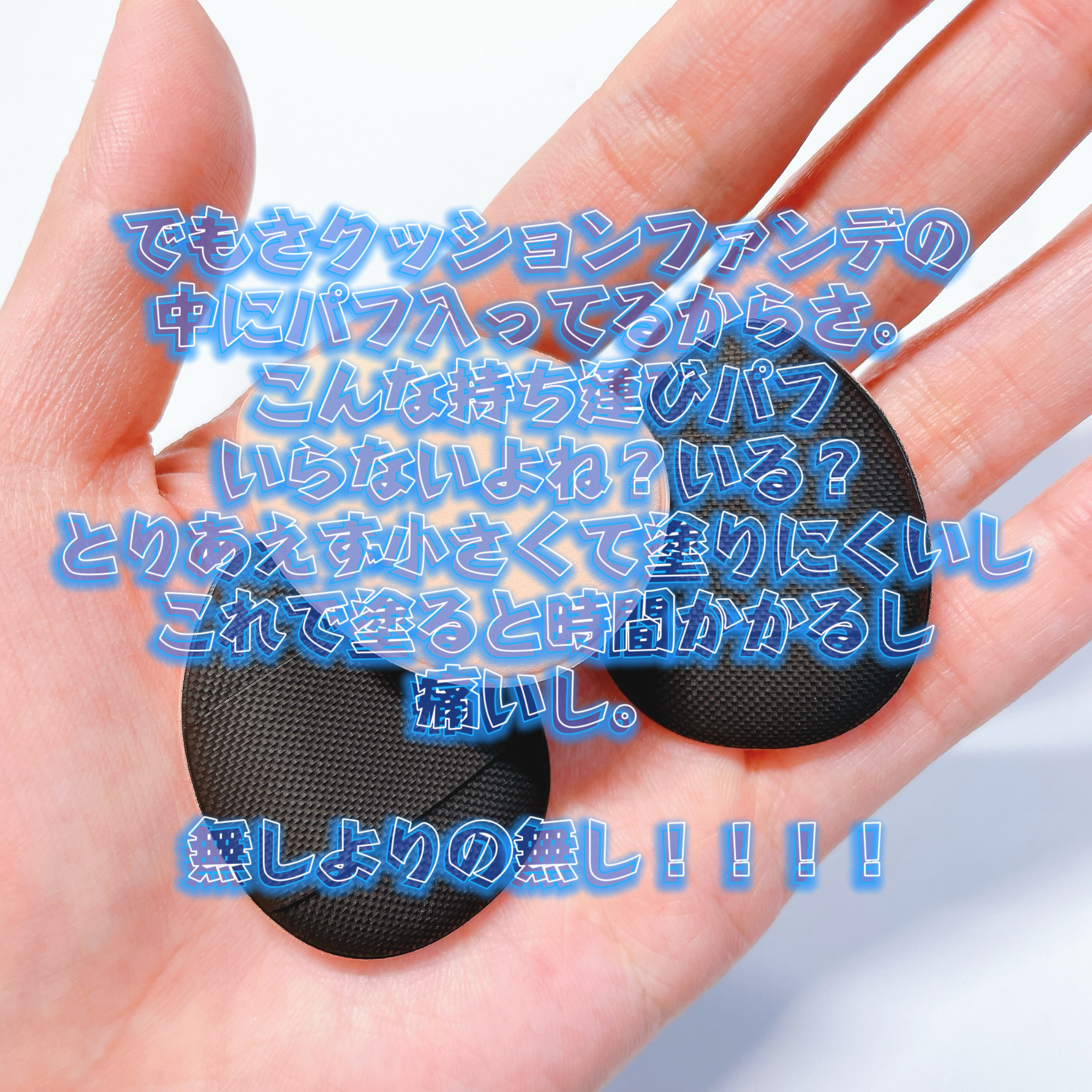 ¥330とは思えない質感✨ 結構厚みがあるのでフワフワモチモチ〜 驚いたのが、ファンデが染み込みにくい構造になっているとのこと!そのおかげで適量ずつ肌に伸ばす事ができるなんて凄い🙌 全ファンデ対応パフと言っても、厚みがあるからケースには入らないのが難点🥹 でもサイズ感は大きすぎず持ち運びは問題なし!