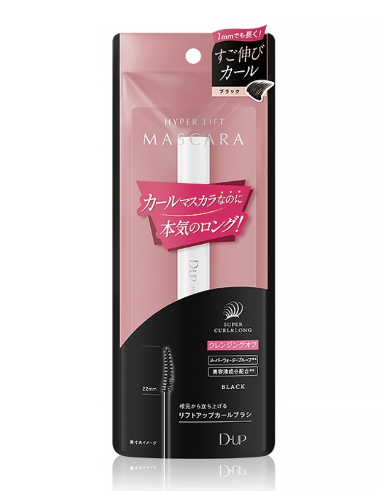 - 2024年10月1日より全国のバラエティショップ、ドラッグストア、公式オンラインショップ(https://store.d-up.co.jp/)にて発売いたします。 『ハイパーリフトマスカラ』は、“カールマスカラで本気のロング”をコンセプトに、ディーアップ史上最強のカールキープ力と驚きの長さを追求した新しいマスカラです。 ■カールキープ力とロング感の両立 カールキープ力の高いマスカラは、通常ワックスや被膜材でカールをキープしますが、同時に「ロング感」や「ダマの無い仕上がり」を両立させることは難しいとされてきました。ハイパーリフトマスカラは、あと1㎜長く、もっとなめらかにするための改良を重ね、「カールキープ力」と「ロング」どちらも限界レベルまで欲張った新処方です。 ■1㎜でも長く!「すご伸びカール」 ロングの秘密は、なめらかで“伸び感”のあるカール液。ファイバーを包み込みながら素早く毛先まで絡み、美しくスッと長いまつげを実現します。 さらに長さを出すため「まつげの根元」にも着目し、生え際から持ち上げて伸ばす、コンパクトなリフトアップカールブラシを新たに採用しました。 『ハイパーリフトマスカラ』で、想像を超える“新次元の上向きまつげ”を体験してください。