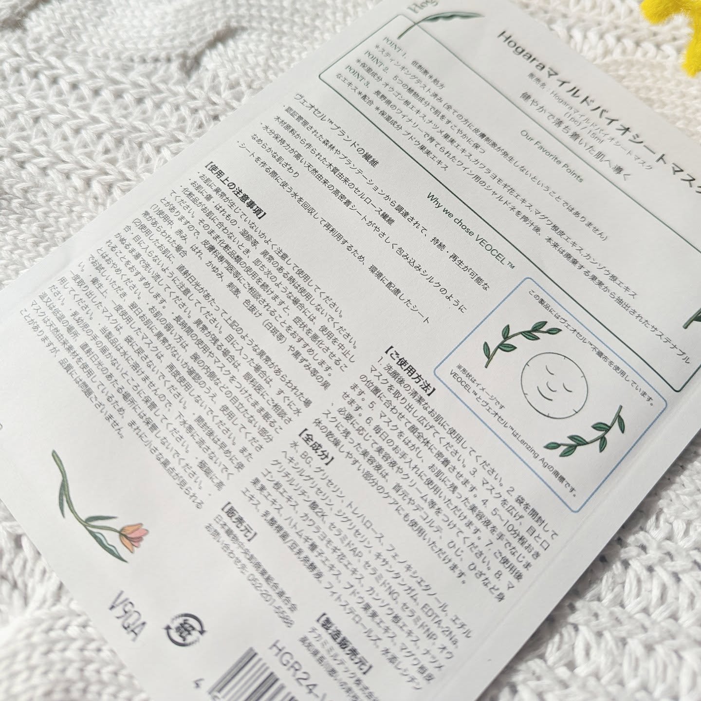 オーガニックコットン吸水ショーツで有名なナチュラルブランドHogara。採用しているオーガニックコットンはトレーサビリティを守り、どこで誰が作ったのかを明らかにし、豊富なカラーラインナップは規格外などで市場に出回らない廃棄予定の食材から成分を抽出したプロジェクトであるフードテキスタイルを用いて展開しているとのこと🌿 環境に負荷が少ない生産プロセス ✔︎刺激が少ないシルキーな肌触り ✔︎強度と耐久性、水分保持力が高いという特徴を持っていて、さらに再生可能な木材資源で作られていることから生分解性が高く、自然に戻ることができるんだそうです🌿✨ 地球へのやさしさまでしっかり考えられたパックってなかなかないと思うので、純粋に本当にすごいなぁと思いました。素材の配慮だけでなく成分にもこだわり、セラミドや様々な植物性エキス、長野県のブドウ果実エキスを配合しお肌をしっかりケアしてくれるのが嬉しいです☺️