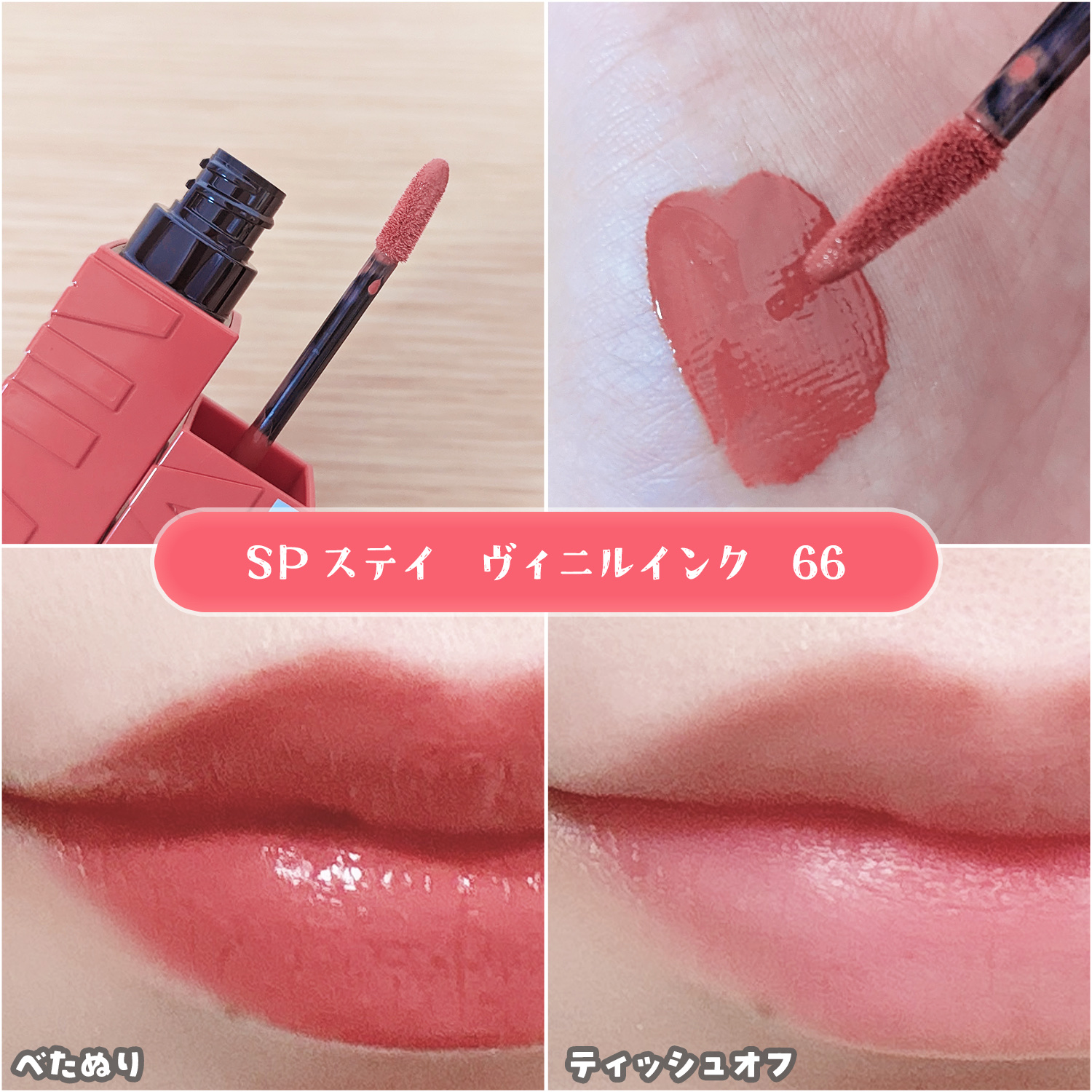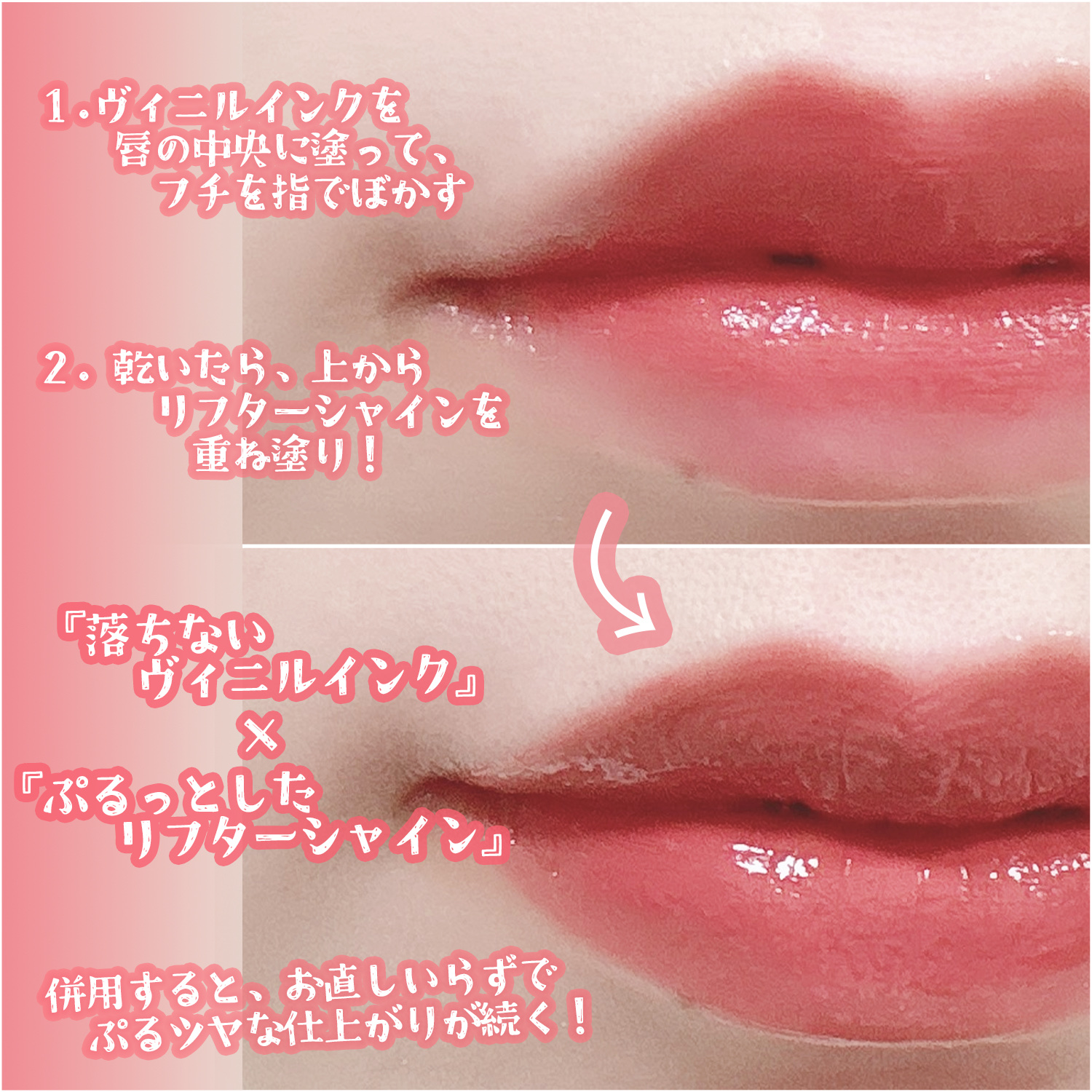 落ちないヴィニルインクとぷるっとしたリフターシャインの併用によりお直しいらずのぷるツヤでかわいい仕上り😍💓 SPステイ ヴィニルインクはベリーな香りで、とっても濃ゆいカラー♥ 初めて使ったのですがなんともいえぬぽってりした仕上がりが!◎