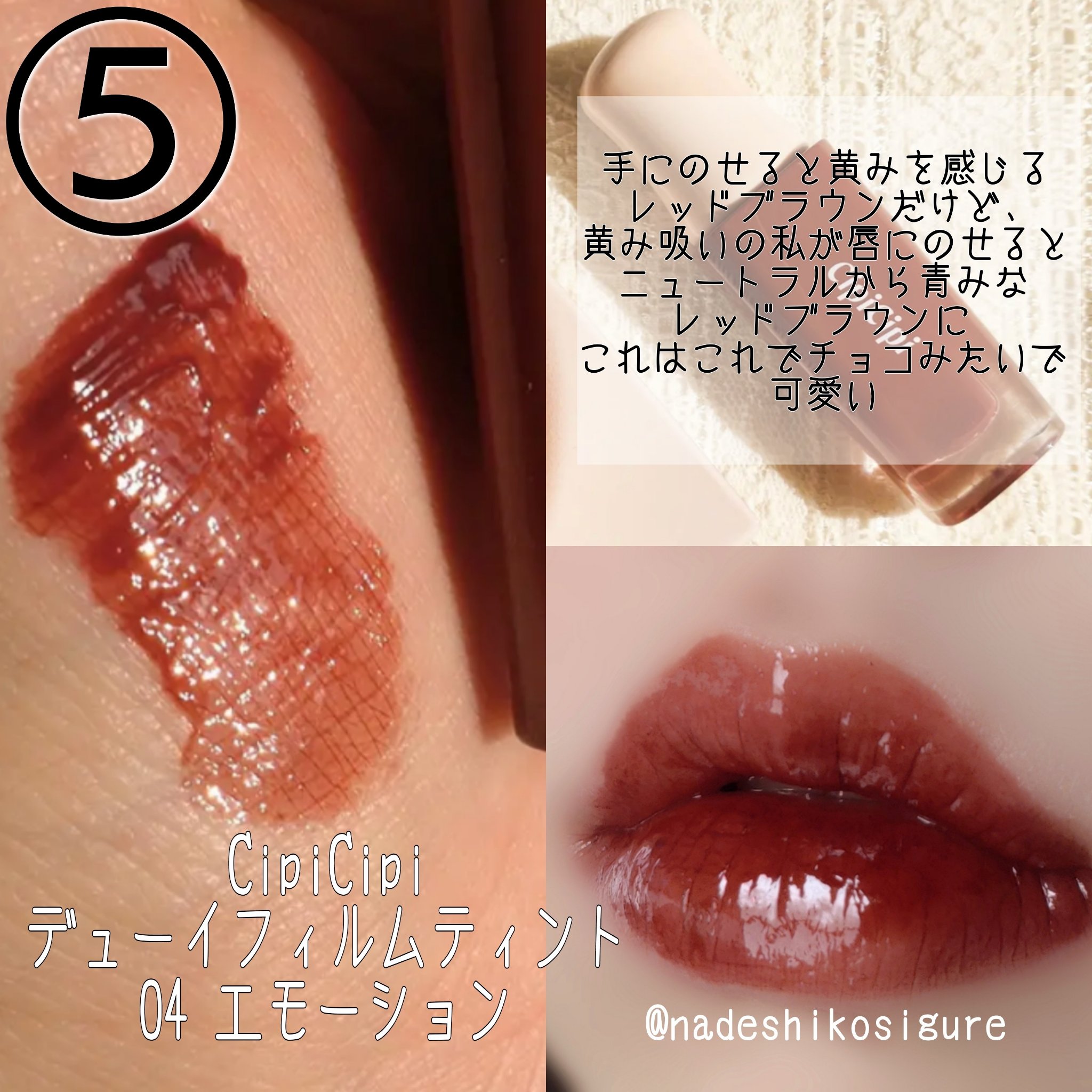 CipiCipiデューイフィルムティント04エモーションなぜか地元のロフトでずっと出会えなかったエモーション🙌🙌🙌今日めっちゃ入荷してたー!!思わず買い。深みレッドブラウンでイエベ秋さん大優勝。1300円くらいなの凄すぎる🥺🩷#CipiCip...