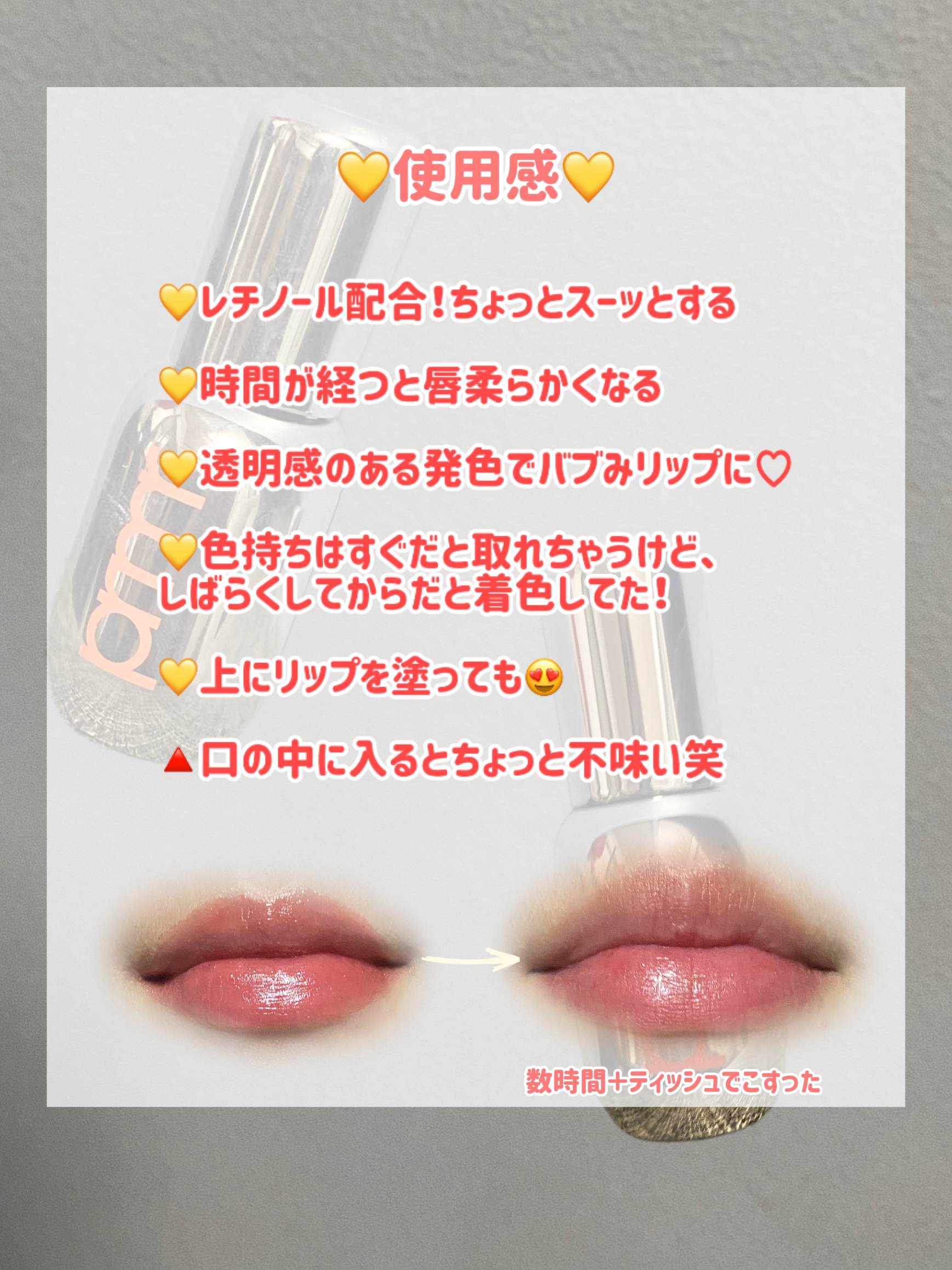 唇にもレチノール*¹でエイジングケア*²の時代に♡ 唇に塗った瞬間、ちゅるりん🩷 シロップのようなツヤ感がたまらなくかわいいリップ♡♡ もったりとしたテクスチャーでハリ感とみずみずしさを強調してくれるんだけど重みやベタベタ感が全くなく