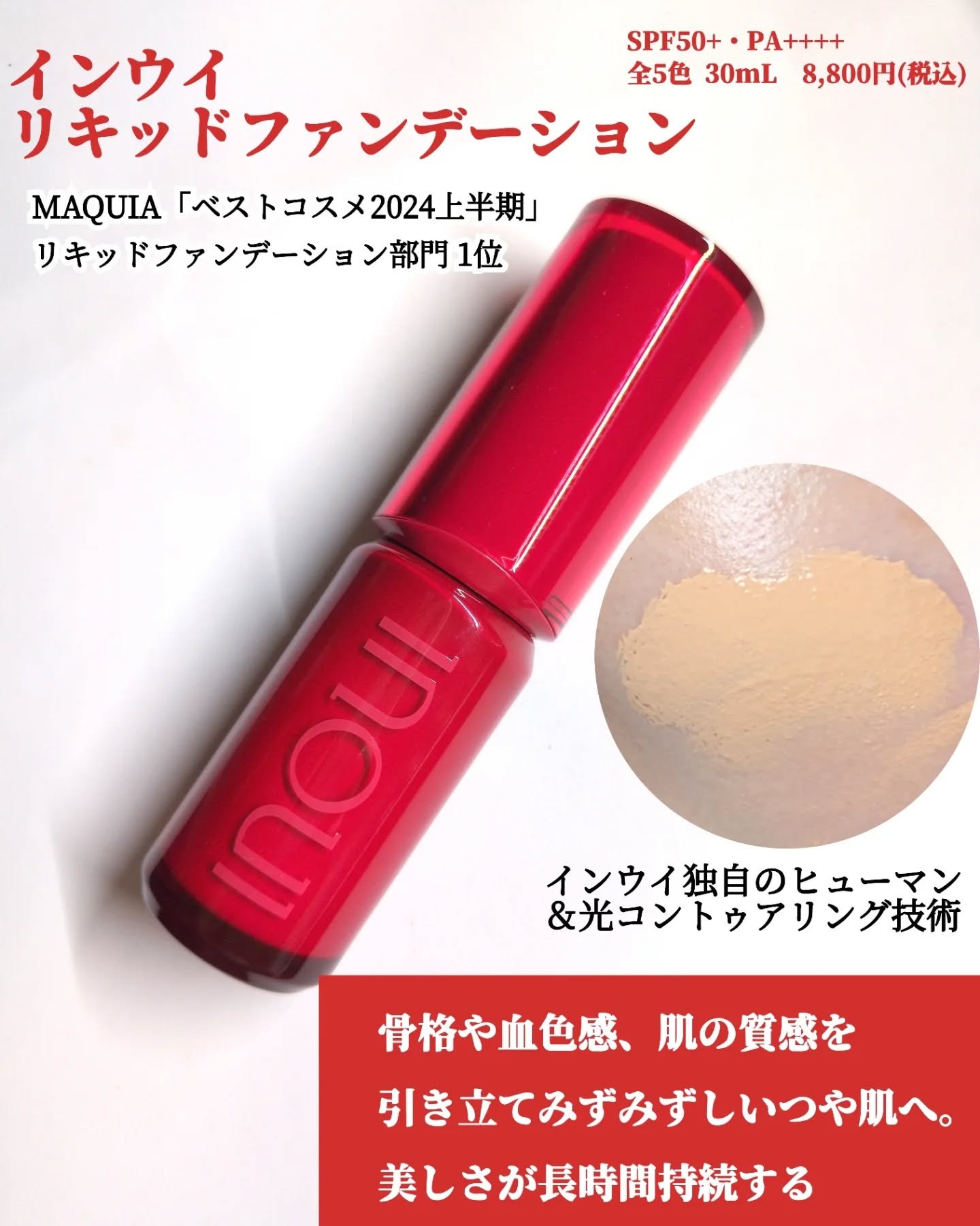 | ファンデーションランキング第16位 | テクスチャーは少しとろみがありますが、とても滑らかで、スルスルと塗り広げられます | 詳細を見る | |