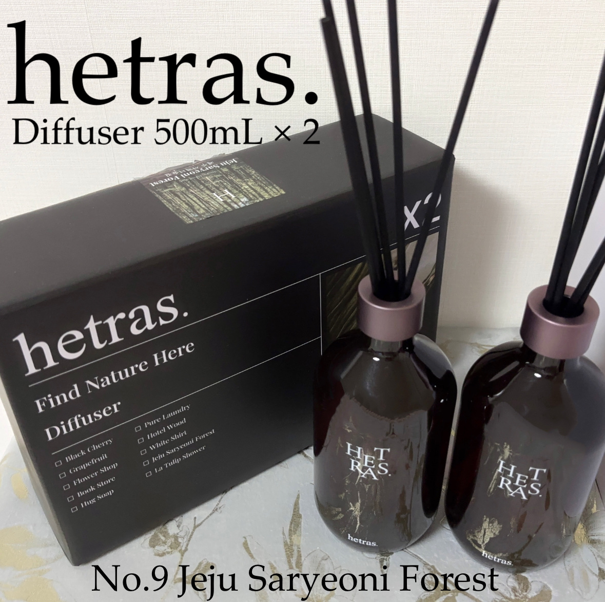 500mlの大容量のディフューザーでしかも2本入り(販売は同じ香りです) 高級ホテルロビーに居る様な大人な落ち着いた香りです 済州にあるサリョニ林道という実在の場所をイメージした香りだそう