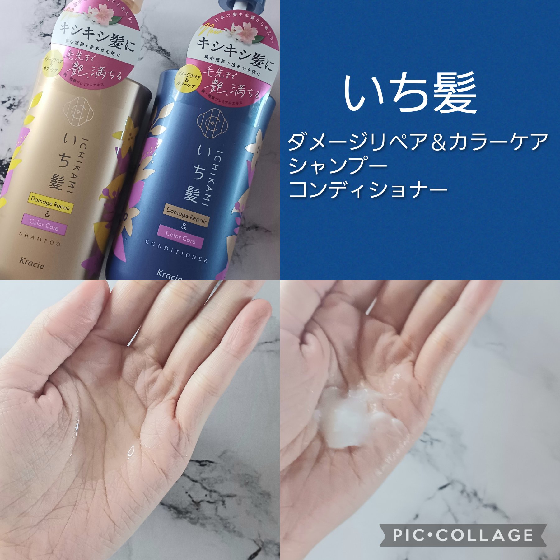 いち髪ダメージリペア&カラーケアラインシャンプー・コンディショナーをいただきました。 もっちりとした泡立ちで摩擦少なく、すっきりと洗い上げ◎ シャンプーだけでリンスをした後かのような、指通りなめらかな手触りになり驚きました❣️