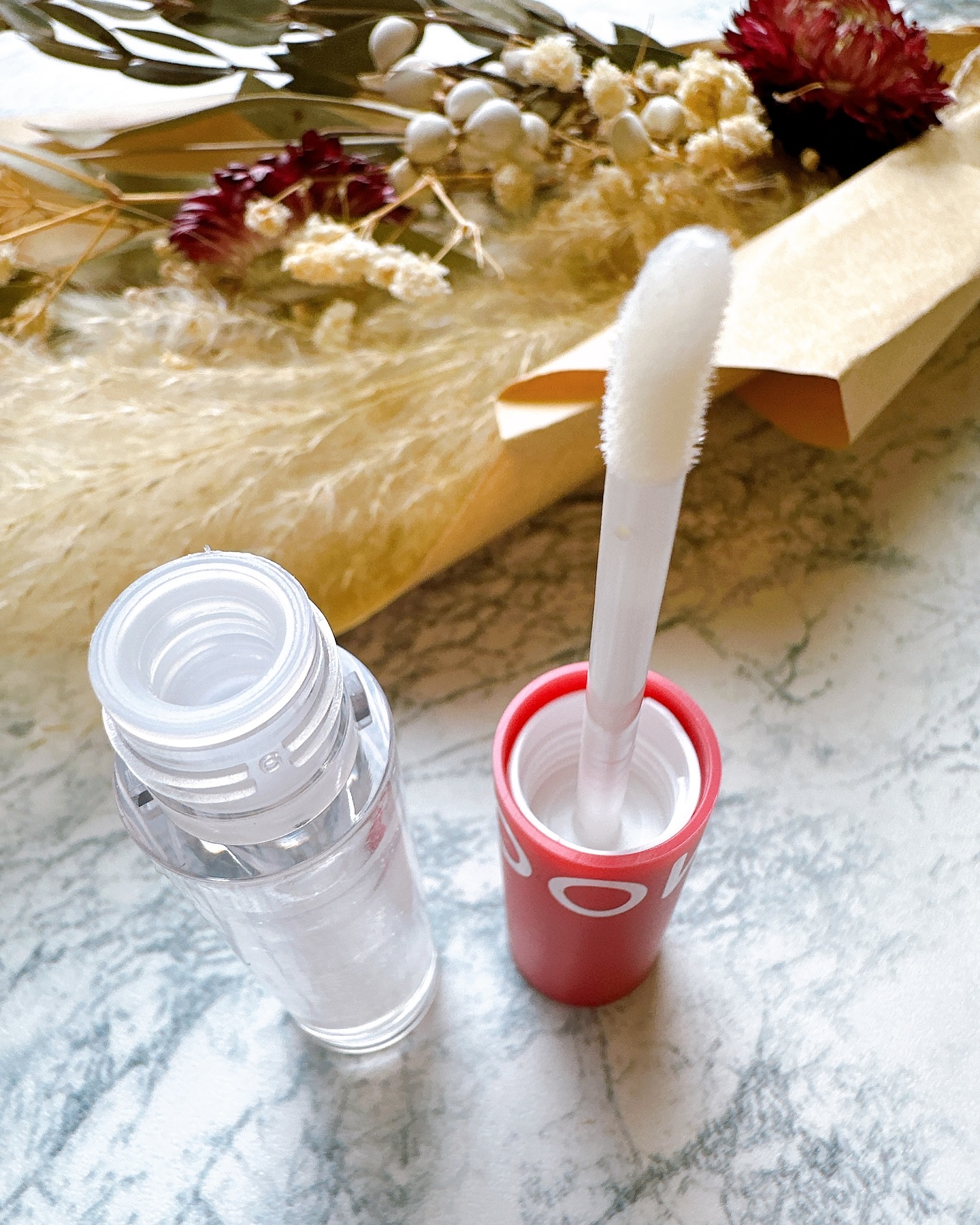 最初につけた瞬間はうるツヤなウォーターティント。でも時間が経つと、色がぴたっと定着🙌 フィギースウィーティーのカラーはワームイチジクカラー。大人っぽくも使える感じ◎ 塗った瞬間スースーして、唇がぷるんとする感覚。色はイエローベースにゴールドシマーパール。