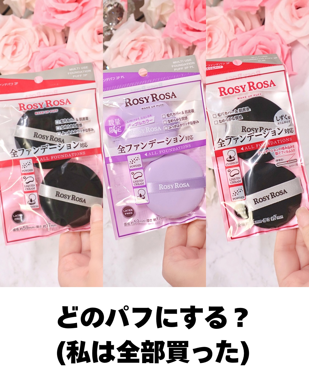 ロージーローザさんの大人気パフのスリムタイプが3月15日に発売されますね! しずく型で細かい所にもフィットするし、収納に便利なところがすごく良いです✨ 液体状のファンデーションが染み込まない設計なので、ファンデの節約にもなるし、リキッドチークを馴染ませるのにも良さそうです。