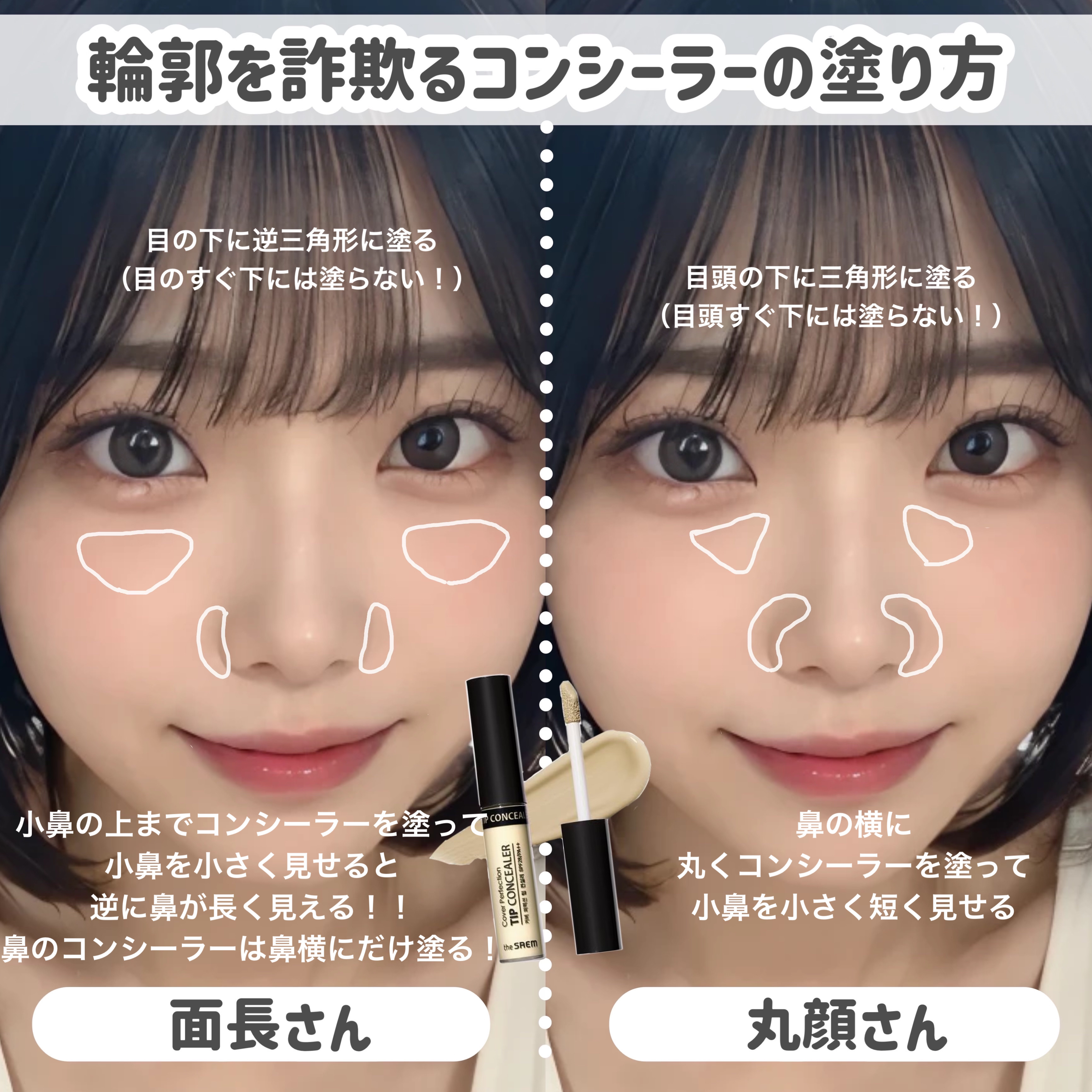 人中短縮メイク!! 人中が短いとのっぺり感が減って可愛らしい印象になります!面長解消にも🙆♀️ 逆に人中が長めだと大人っぽい、男性的な印象になるので、自分の好みに合わせて取り入れてみてください! ぜひ参考にしてください〜!