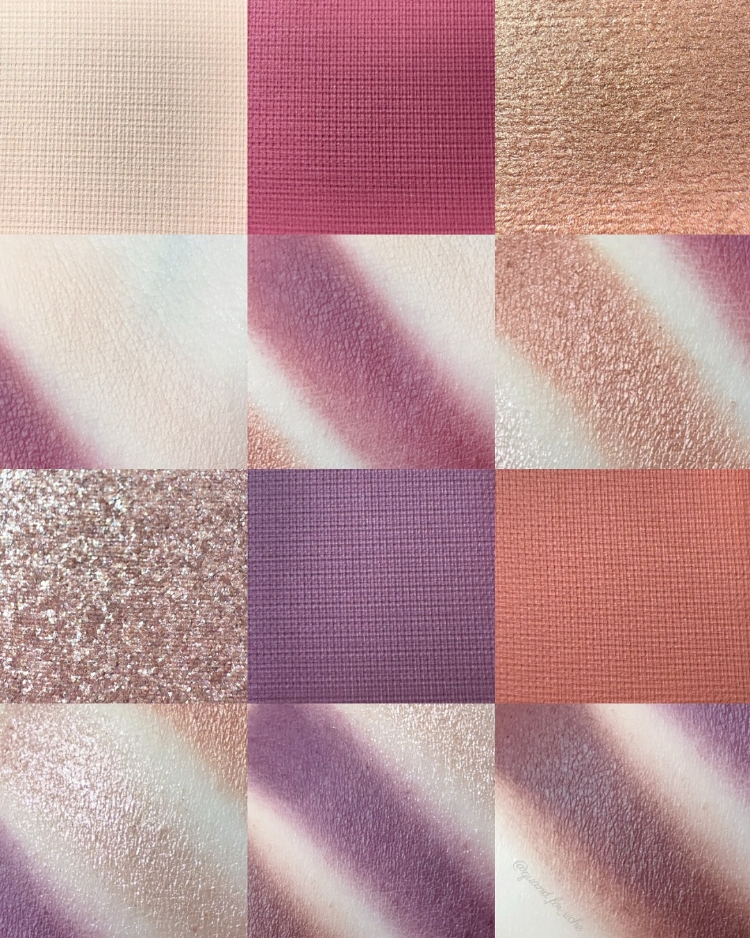 赤みカラーやパープル・ブラウンカラーまで揃った深みのあるパレット🎨 マット・シアー・ラメと質感の違うパウダー。ナチュラルから濃いメイクまで組み合わせ次第🥰 高発色だからナチュラル使いには1度手の甲で調整すると良さそう!