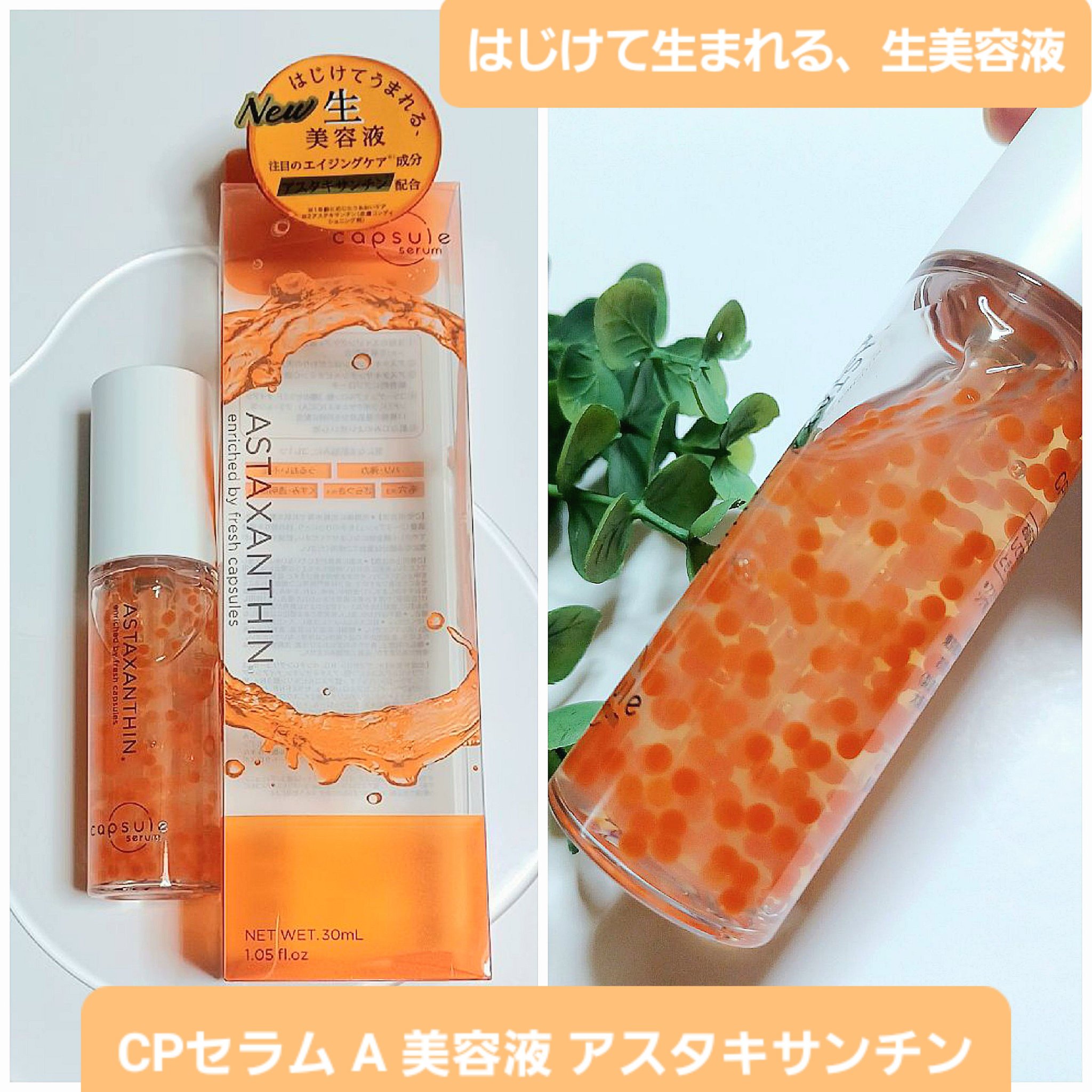 カプセルセラムCPセラムA美容液"生"美容液でエイジングケア*¹🧡アスタキサンチン*²、2種のビタミンC誘導体*³、コラーゲン、ヒアルロン酸、3種のセラミド、ナイアシンアミド、ツボクサエキス、フラーレンなどの整肌成分を配合。独自のカプセルが成...