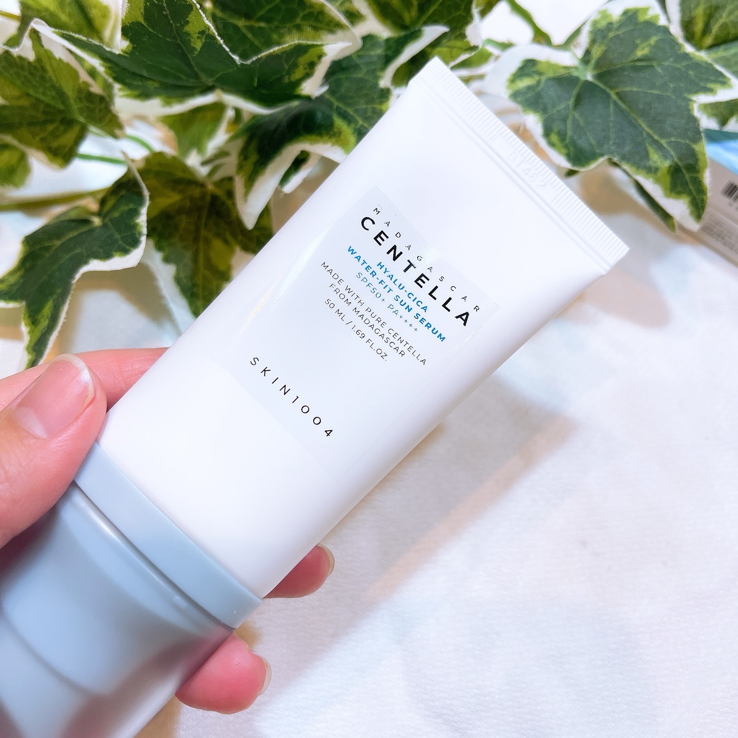 SKIN1004のヒアルーシカ サンセラムはべたつきなしでセラムような軽い付け心地 SPF50+PA++++強力な紫外線保護効果があるのにヒアルロン酸とツボクサエキス配合で乾燥した肌に水分チャージしてくれるからお肌の息苦しさがなくて1日快適なお肌感☀️ 真っ白の乳液テクスチャだけど白浮きしないから日焼け止めでお顔真っ白になっちゃうのが心配な人でも適当にササッと伸ばしてもキレイな仕上がり✨ この日焼け止めは私も大好きで実はこれ5本目かな?🤔 私がリアルにずっと使ってる商品だからみんなにも使ってみて欲しい🥺💓