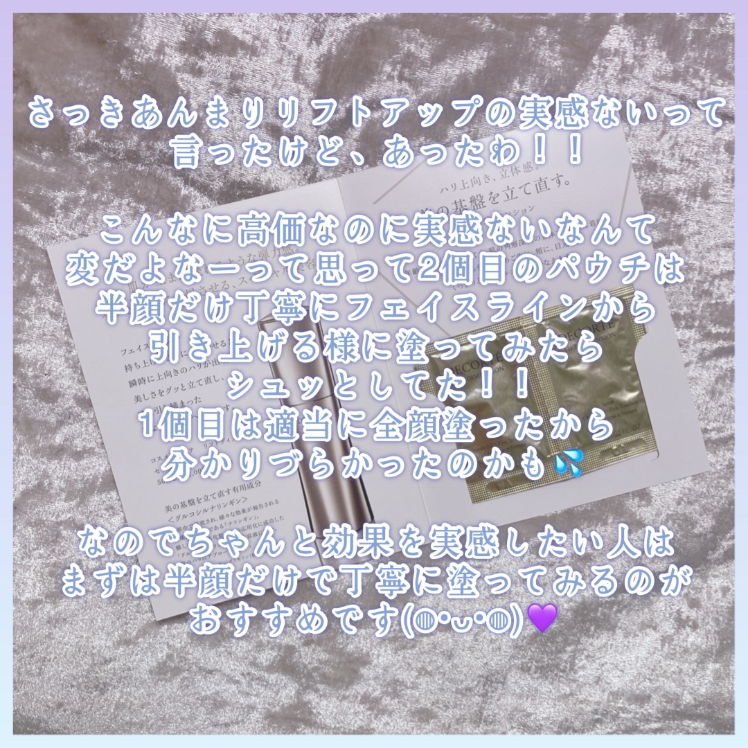 - 角層深部にまで効果的に働きかけるエイジングケア※美容液 ※年齢に応じたお手入れ フェイスラインを持ち上げるようになじませると、瞬時に上向きのハリをもたらします。まるで、お肌が生まれ変わったかのような弾力感が漲る、凛と引き締まったしなやかなお肌へ。