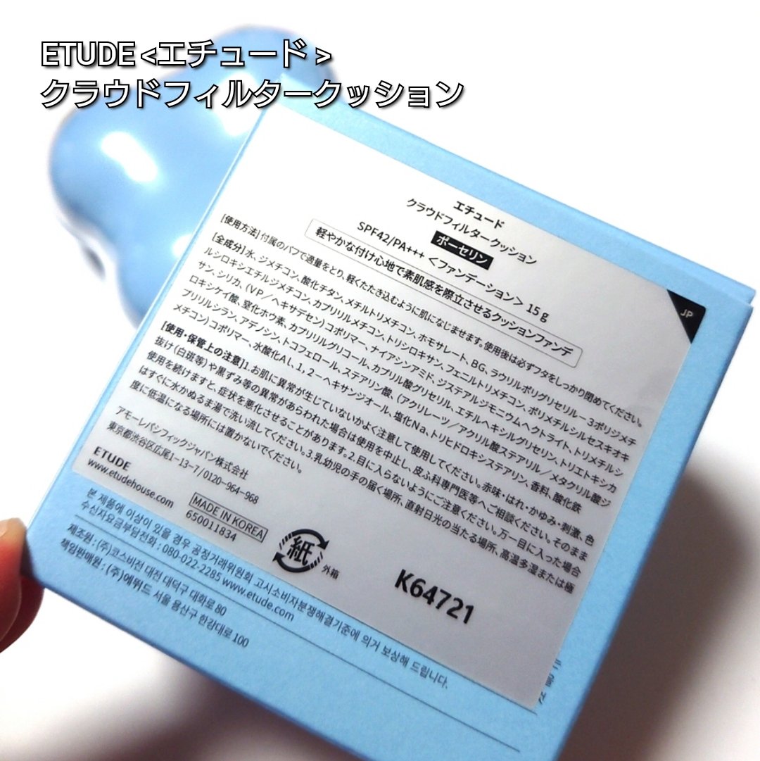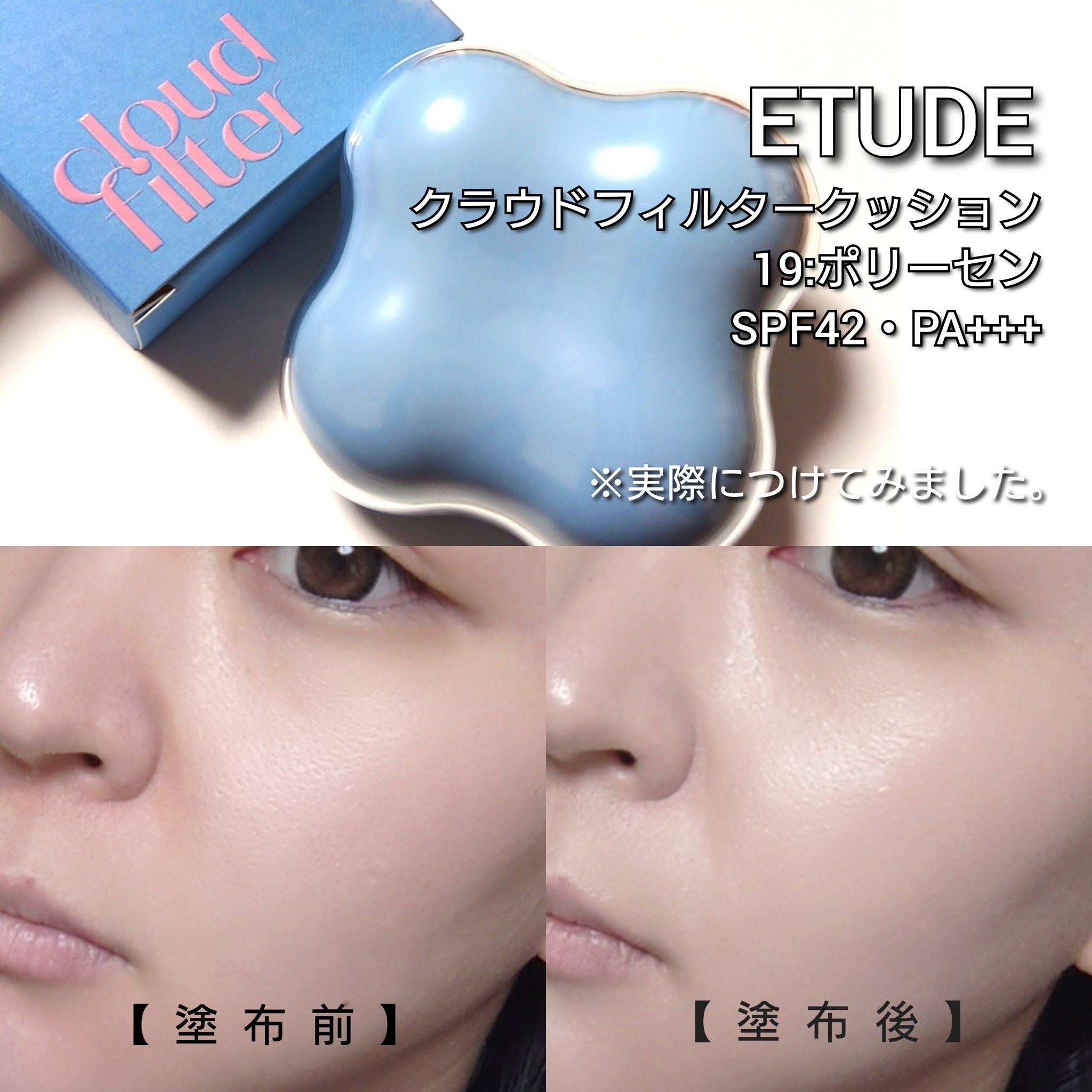 カラーコントロール×カバー力× セミツヤ肌キープの3役を1つで!? 儚げ透明感*1のある#うぶ肌に仕上げる クッションファンデ☁️ エチュード クラウドフィルタークッション 19 まるで雲のように軽やかな付け心地で、 マット寄りのセミマ...