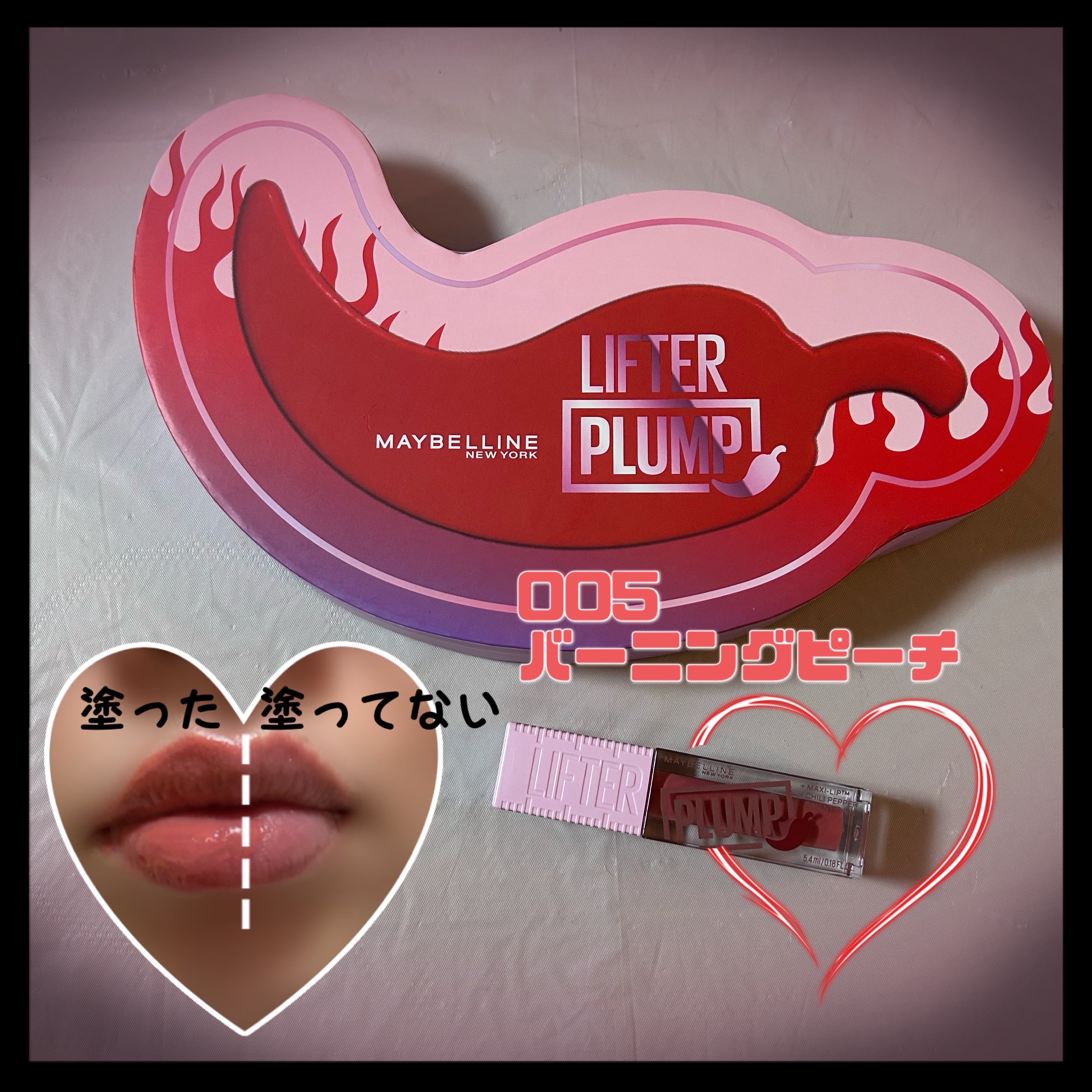 唐辛子成分配合 ビビッとくるボリューム感 あふれる血色感に燃えるツヤ色をプラス めちゃくちゃジンジンする!! ペリペラのプランパーも痛かったけど、リフタープランプも負けないくらい痛い🤣