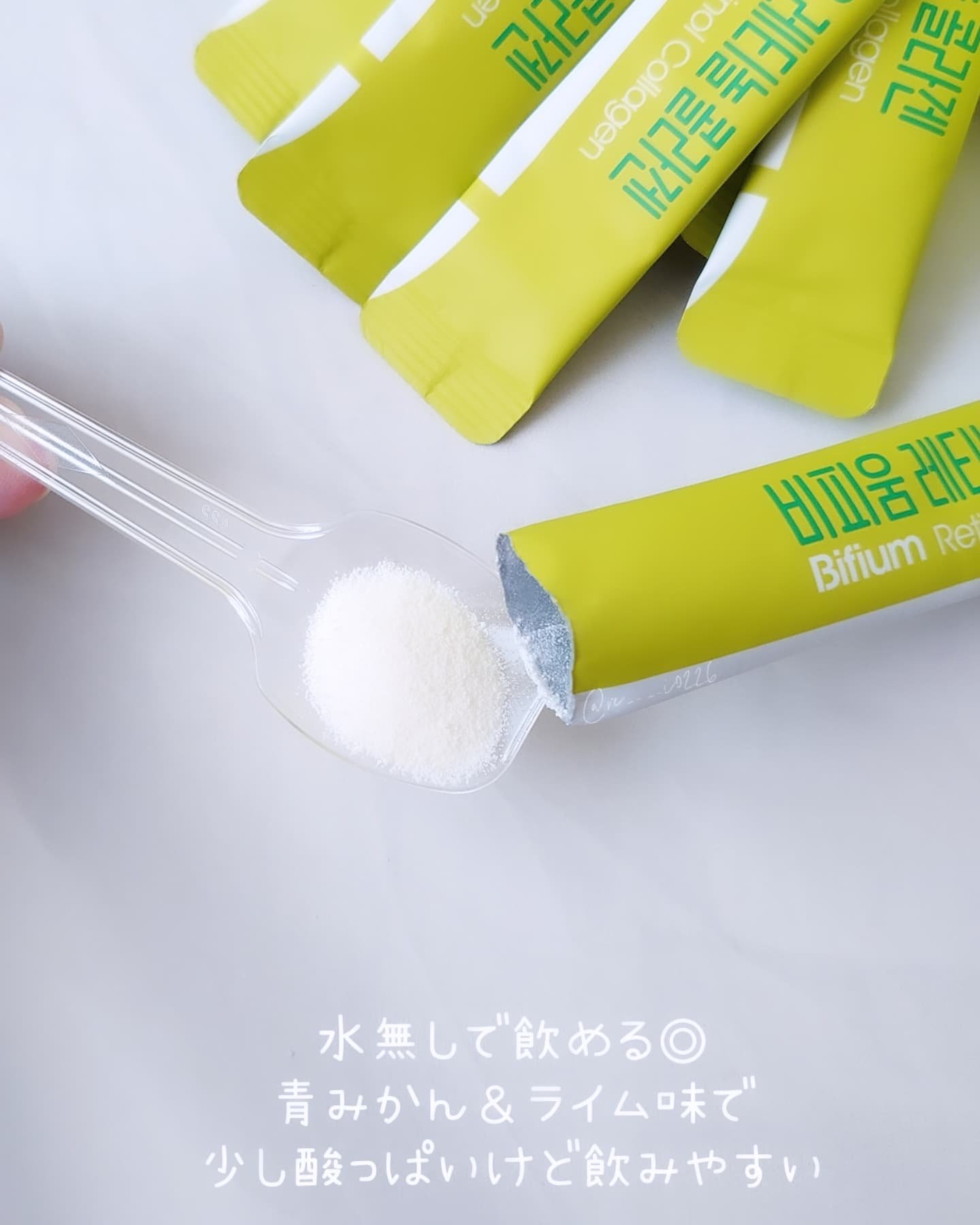 飲みやすいパウダータイプのレチノール✨ レチノール1000μg+コラーゲン1000㎎配合で肌の再生をサポートや毛穴ケア&ハリツヤアップに働きかけてくれるのが特徴です🌿 爽やかな青みかんライム味でほんのり柑橘の酸味があってさっぱりした味で飲みやすいと感じました💗 美味しくて続けやすいのが嬉しい🌸 スキンケアはもちろん、インナーケアも大事だからサプリメントでしっかり補っていきたい😊