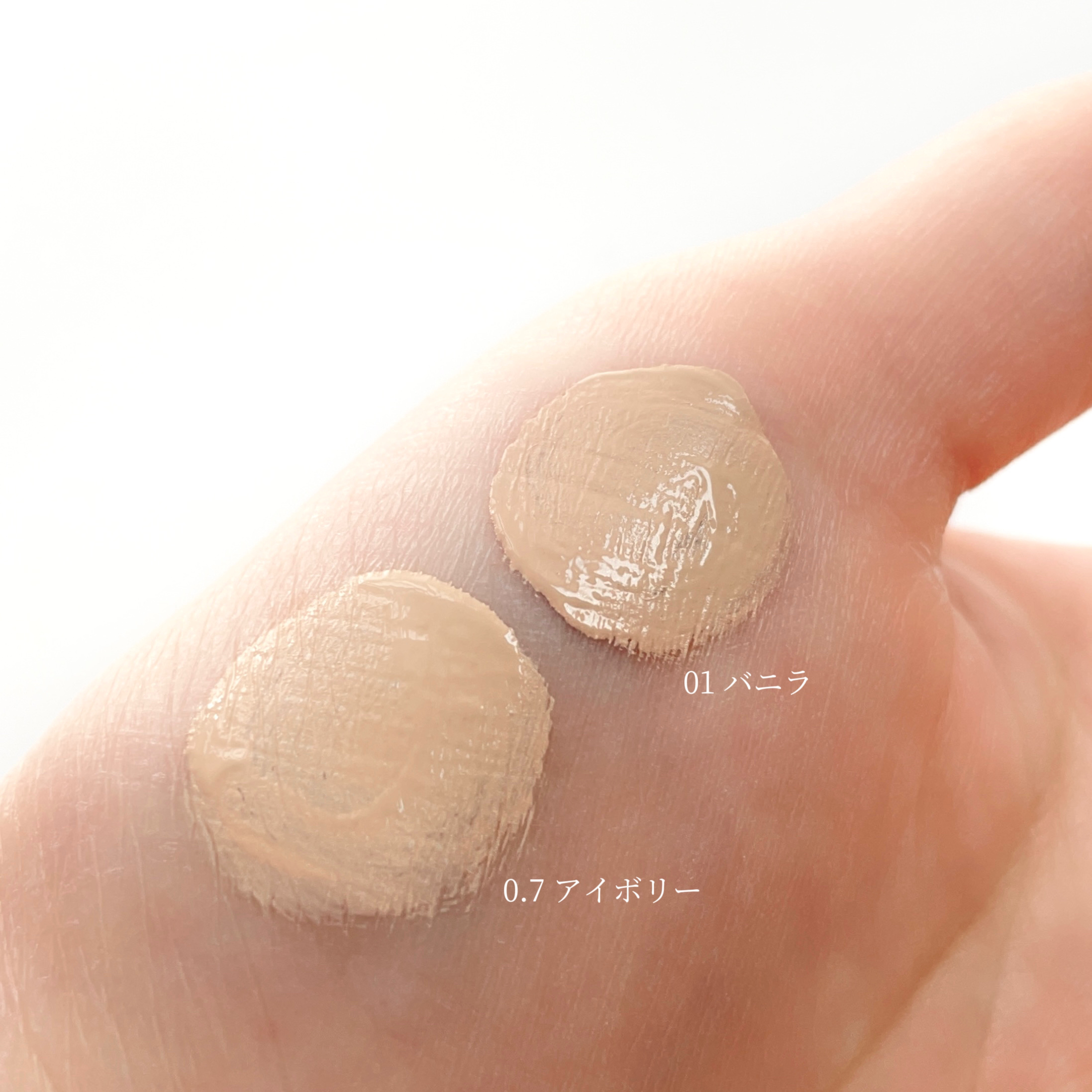 - <0.5 ポーセリン> 水、シクロペンタシロキサン、フェニルトリメチコン、タルク、セチルPEG/PPG-10/1ジメチコン、BG、PVP、ナイアシンアミド、(ビニルジメチコン/メチコンシルセスキオキサン)クロスポリマー、PEG-10ジメチコン、塩化Na、ジステアルジモニウムヘクトライト、トリエトキシカプリリルシラン、水酸化Al、p-アニス酸、カプリル酸グリセリル、パルミチン酸、ジメチコン、ステアリン酸、アデノシン、ツボクサエキス、スベリヒユエキス、カミツレ花エキス、セイヨウニンジンボク果実エキス、ヒポファエラムノイデス果実エキス、香料、酸化チタン、酸化鉄 <0.7 アイボリー> 水、シクロペンタシロキサン、フェニルトリメチコン、タルク、セチルPEG/PPG-10/1ジメチコン、BG、PVP、ナイアシンアミド、(ビニルジメチコン/メチコンシルセスキオキサン)クロスポリマー、PEG-10ジメチコン、塩化Na、ジステアルジモニウムヘクトライト、トリエトキシカプリリルシラン、水酸化Al、p-アニス酸、カプリル酸グリセリル、パルミチン酸、ジメチコン、ステアリン酸、アデノシン、ツボクサエキス、スベリヒユエキス、カミツレ花エキス、セイヨウニンジンボク果実エキス、ヒポファエラムノイデス果実エキス、香料、酸化チタン、酸化鉄 <01 バニラ> 水、シクロペンタシロキサン、フェニルトリメチコン、タルク、セチルPEG/PPG-10/1ジメチコン、BG、PVP、ナイアシンアミド、(ビニルジメチコン/メチコンシルセスキオキサン)クロスポリマー、PEG-10ジメチコン、塩化Na、ジステアルジモニウムヘクトライト、トリエトキシカプリリルシラン、水酸化Al、p-アニス酸、カプリル酸グリセリル、パルミチン酸、ステアリン酸、ジメチコン、アデノシン、ツボクサエキス、スベリヒユエキス、カミツレ花エキス、セイヨウニンジンボク果実エキス、ヒポファエラムノイデス果実エキス、香料、酸化チタン、酸化鉄 <02 ベージュ> 水、シクロペンタシロキサン、フェニルトリメチコン、タルク、セチルPEG/PPG-10/1ジメチコン、BG、PVP、ナイアシンアミド、(ビニルジメチコン/メチコンシルセスキオキサン)クロスポリマー、PEG-10ジメチコン、塩化Na、ジステアルジモニウムヘクトライト、トリエトキシカプリリルシラン、水酸化Al、p-アニス酸、カプリル酸グリセリル、パルミチン酸、ステアリン酸、ジメチコン、アデノシン、ツボクサエキス、スベリヒユエキス、カミツレ花エキス、セイヨウニンジンボク果実エキス、ヒポファエラムノイデス果実エキス、香料、酸化チタン、酸化鉄 <03 ブライト> 水、シクロペンタシロキサン、酸化チタン、炭酸ジエチルヘキシル、BG、ネオペンタン酸イソデシル、PEG-10ジメチコン、グリセリン、安息香酸アルキル(C12-15)、(VP/ヘキサデセン)コポリマー、ナイアシンアミド、クオタニウム-18ベントナイト、セスキオレイン酸ソルビタン、塩化Na、ミツロウ、シリカ、(ジメチコン/ビニルジメチコン)クロスポリマー、トリエトキシカプリリルシラン、水酸化Al、1,2-ヘキサンジオール、カプリリルグリコール、酢酸トコフェロール、アデノシン、ジメチコン、ツボクサエキス、スベリヒユエキス、カミツレ花エキス、セイヨウニンジンボク果実エキス、ヒポファエラムノイデス果実エキス、酸化鉄、グンジョウ