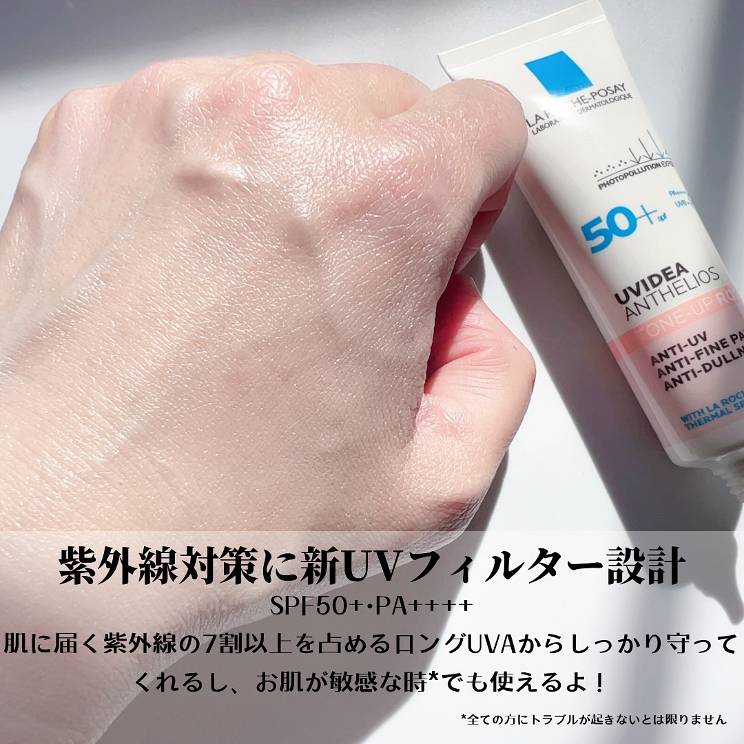 - 素肌のような透明感を演出するピンクのトーンアップUV*1。 光を乱反射し肌を綺麗に魅せるトーンアップテクノロジーを採用したトーンアップUVに、新色ローズが誕生。 肌なじみのよいピンクの色味で、澄んだ血色と上質なツヤのある素肌のような透明感肌*1を演出します。 SPF50+・PA++++の防御力で紫外線はもちろん、PM2.5を含む大気中微粒子*2などの外的要因から肌を守る独自のマルチプロテクションテクノロジーを搭載。 さらにエイジングケア*3を考えたスキンケア成分や、肌をやわらげ、肌本来のバリア機能(角層)をサポートする、ラ ロッシュ ポゼ ターマルウォーター(水:整肌成分)配合。 低刺激設計*4 石鹸で落とせます。 *1 メイクアップ効果による *2 物理的な肌の付着からの防御。すべての大気中物質をさすわけではありません *3 年齢に応じたうるおいを与えるケア *4 すべての人に皮膚刺激がおきないわけではありません。