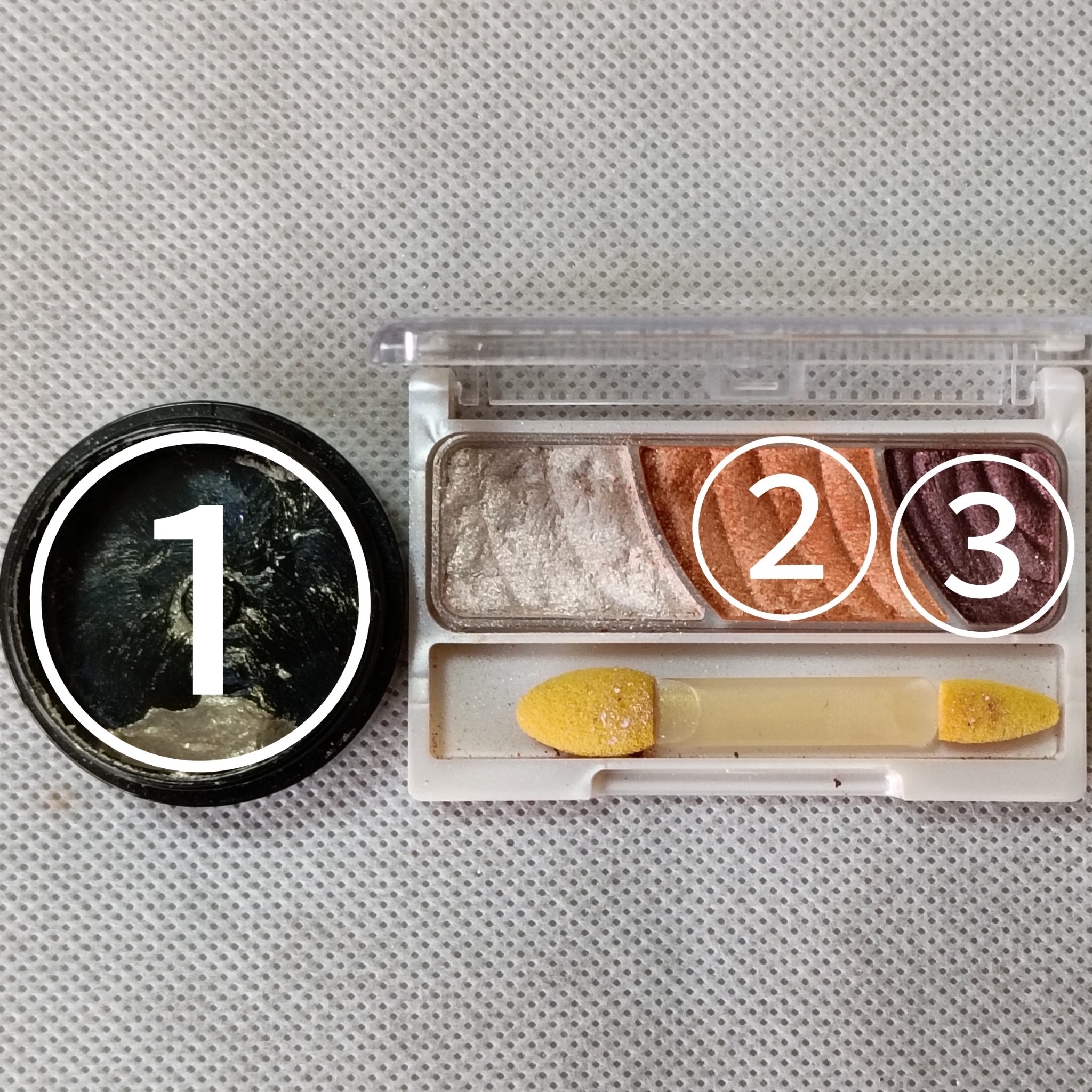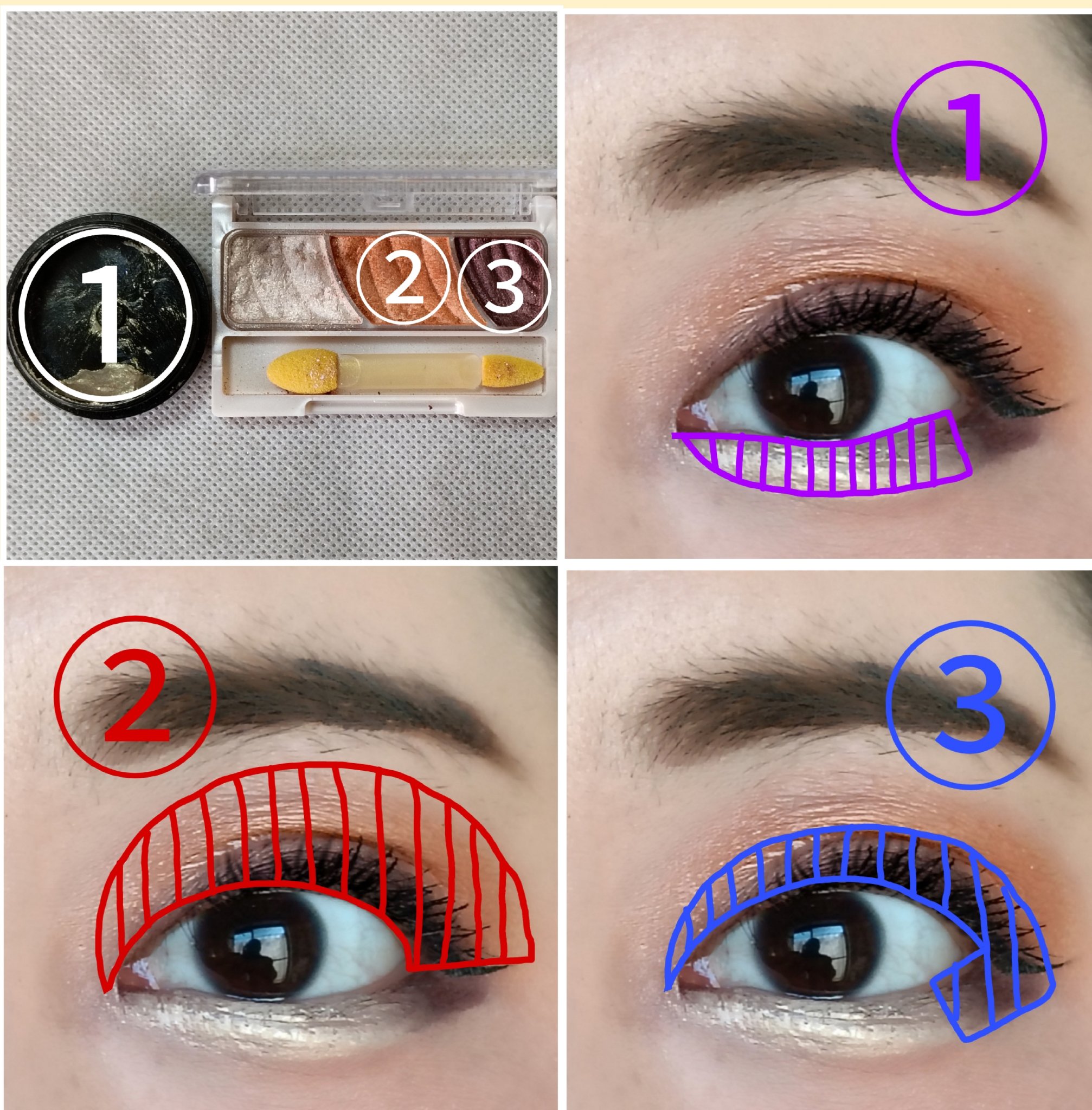 アイシャドウパレットは、URGLAM UR GLAMBLOOMING EYE COLOR PALETTE 02を、使用しました。 マスカラは、MAYBELLINE NEW YORK コロッサルボリュームエクスプレスを、まつ毛全体にまんべんなく塗ります。 リップは、wet 'n' wild MegaLast Lip Colorを、唇全体にまんべんなく塗ります。