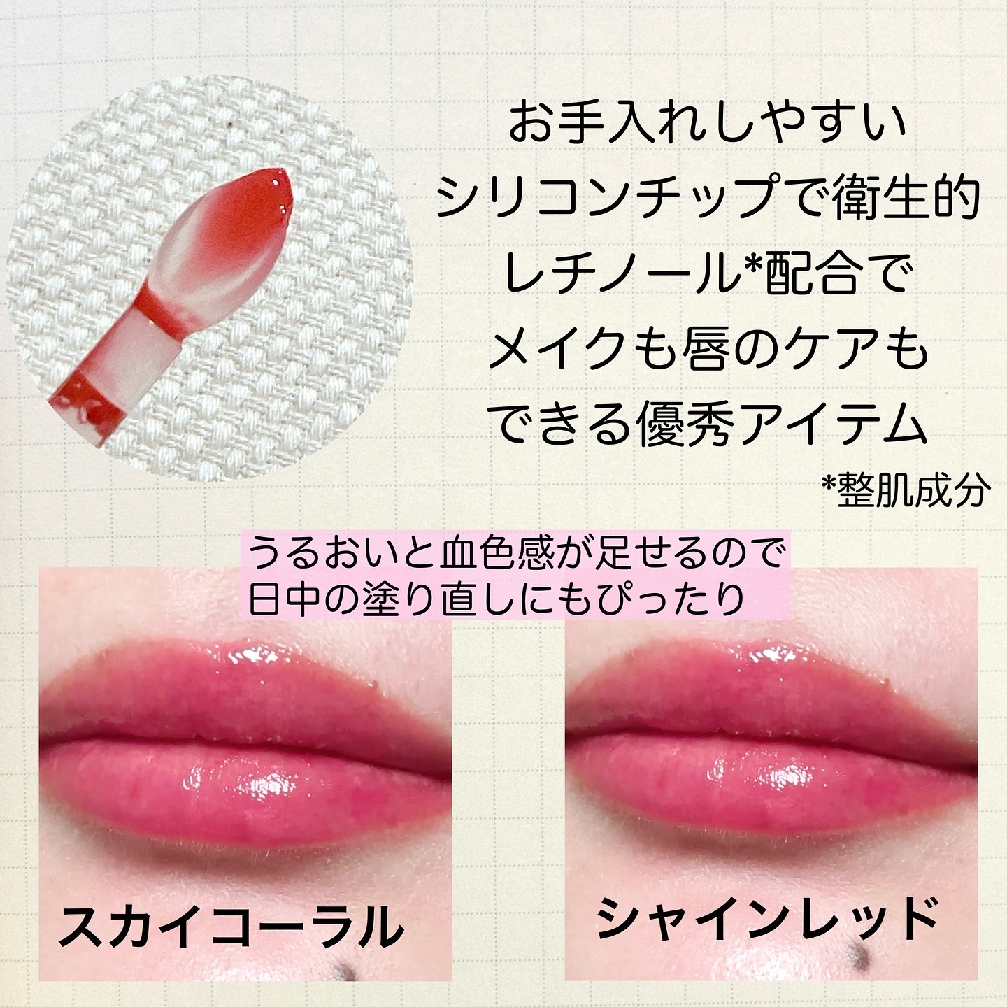 | 口紅・グロス・リップライナーランキング第31位 | ほんのりフルーツみたいな良い香りがします🍎 付けた感じのテクスチャーはぷるもち系ですね | 詳細を見る | |