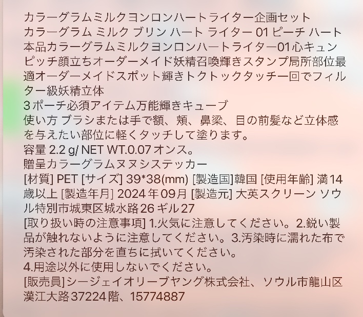商品詳細情報Colorgram ミルクブリンハートライター