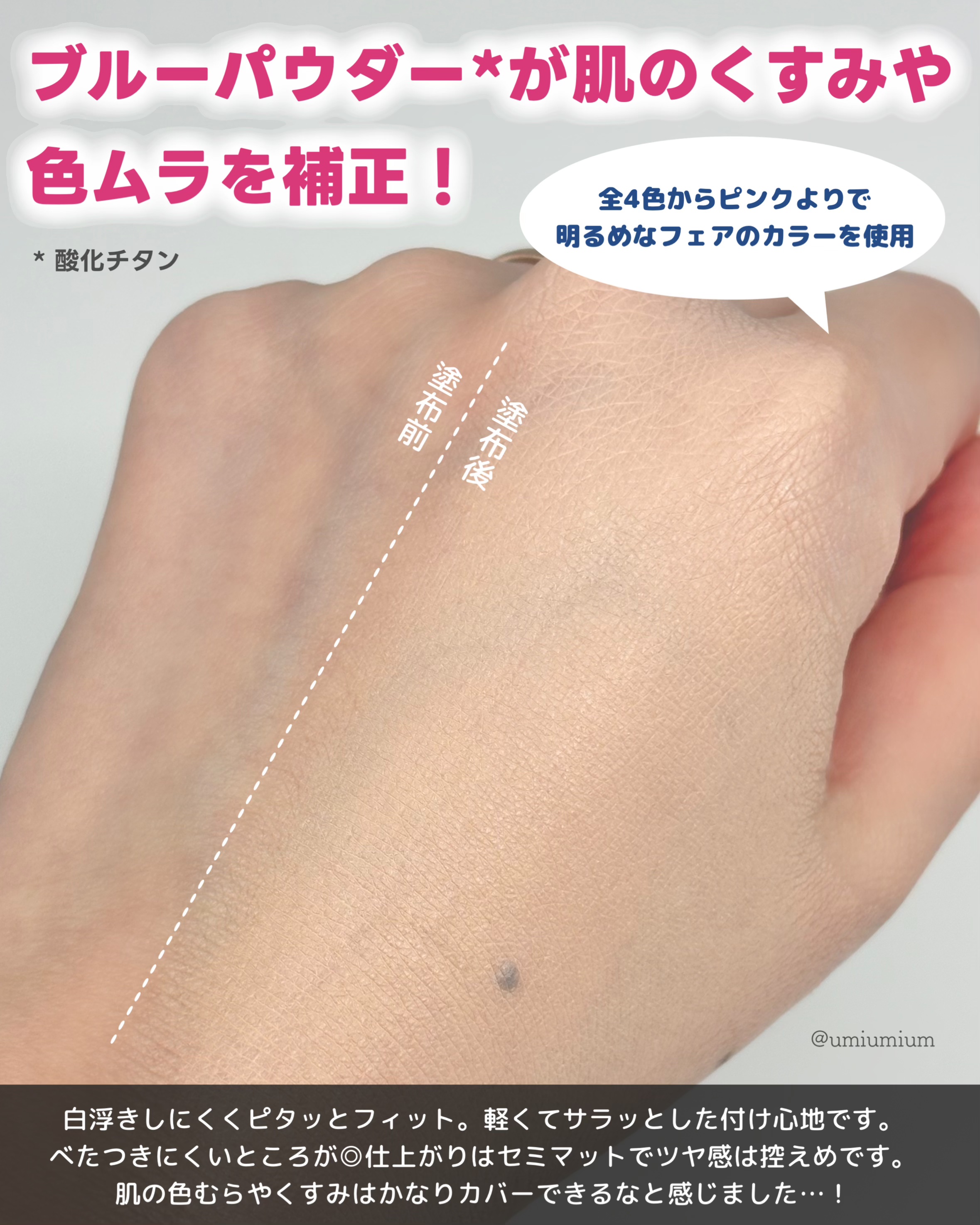 - 【ふんわり晴れごこち 映える#うぶ肌】 カラーコントロール×カバー力×セミツヤ肌を長時間キープ 1つで3役、華やかな透明感*¹のある肌に仕上げるマルチクッション <触れたくなる儚げ透明肌*¹> ブルーパウダー*²が肌のくすみや色ムラを補正。ワントーン明るい*¹透き通った肌印象に。 <ナチュラルなカバー力> 毛穴や赤みなど気になる肌悩みもふんわりカバー <まるで雲のような軽やかな付け心地> 重たさを感じさせない解放感のあるセミツヤ肌に SPF42/PA+++ <キュートなパッケージデザイン> 韓国のヘアメイクサロン「Kitts」と共同開発 アイドル級の透き通った色白肌を表現 *¹ メイクアップ効果による *² 酸化チタン