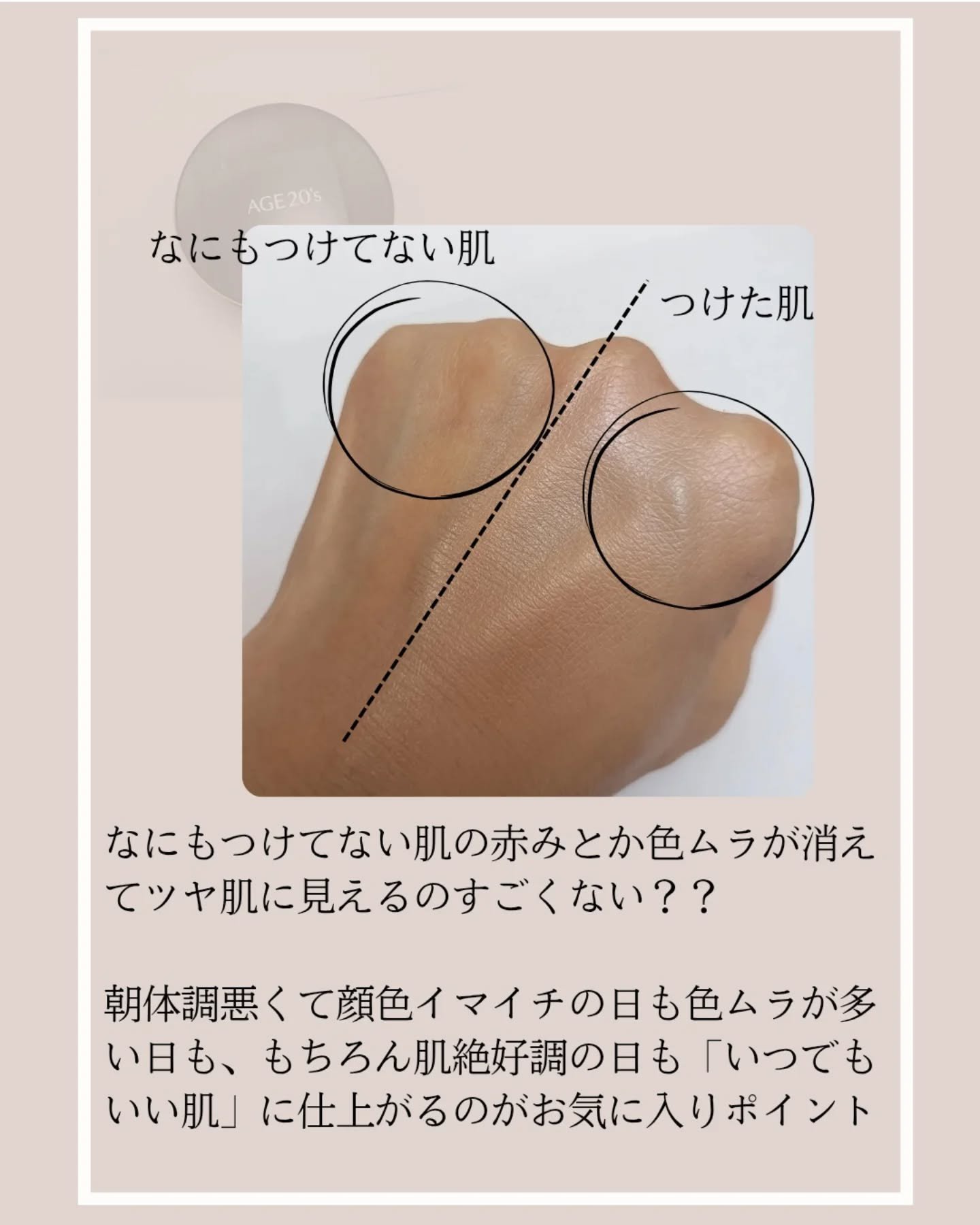 つけた瞬間からナチュラルなカバー力できれいなツヤ肌爆誕😆 色ムラとかくすみとか嫌なところも程よくカバー👍 エッセンス成分71%も配合されているそうで、肌にのせると少しひんやり感があるのはそのせいかも。 UV対策はSPF50+SPF++++と最高値だからメイク直しに使うと午後からの肌もいい感じ✨