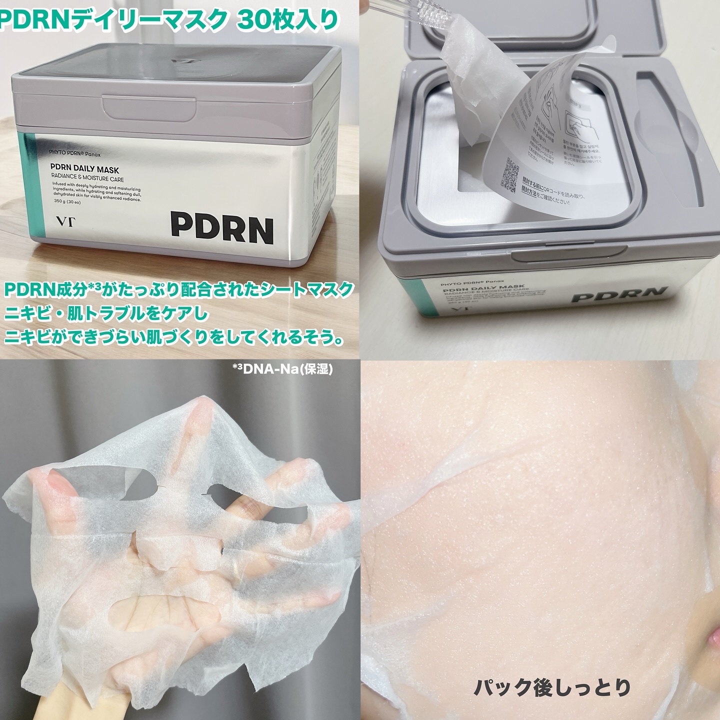 VTのPDRNで内側から発光肌完成! PDRNアンプル💚30ml。ニキビ&ハリツヤケアを同時に! 乳液みたいなミルキーなテクスチャー。 なじませると、ツヤ、もちっな仕上がり✨ 薄めのシートにヒタヒタのエッセンス🌟 肌にしっかり密着します。