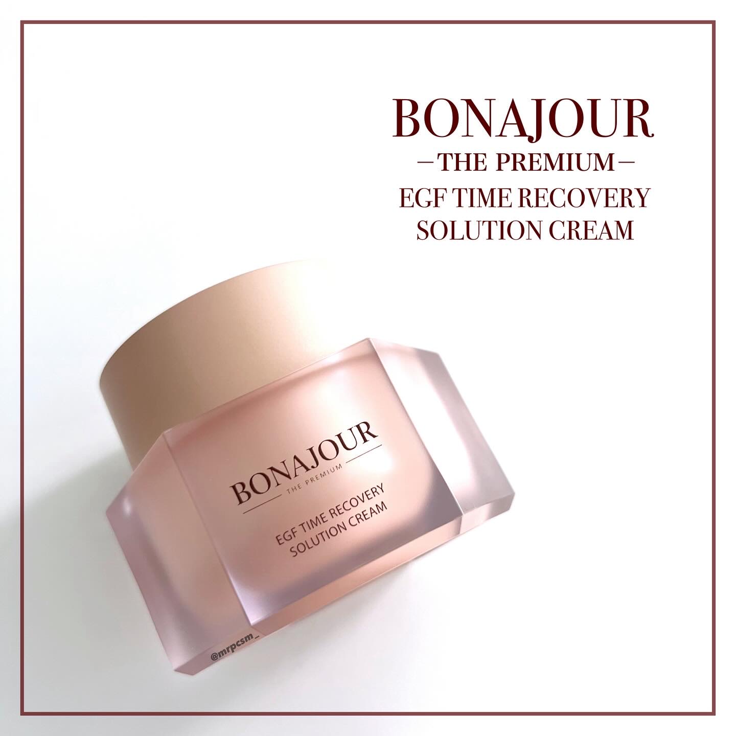 #PR@bonajour_japanEGFタイムリカバリーソリューションクリーム♡自宅でも高級エステのような感覚が味わえるプレミアムライン✨濃厚なのに伸びがよく保湿力抜群🫶🏻ふっくらもっちり柔らかな肌触りになって病みつき😍パケも洗練されていて...