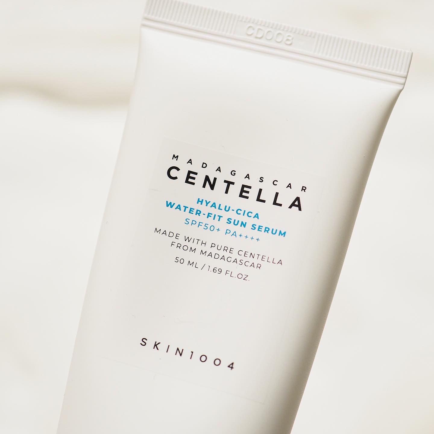 日焼け止め特有のキシみや匂いがせず、白浮きしない! べたつきとはさよなら!セラムような軽い付け心地 ヒアルロン酸とツボクサエキス配合で乾燥した肌に水分チャージ ヒアルロン酸の潤いとCICA成分の鎮静を黄金比率で配合したSKIN1004独自の開発成分「ヒアルーシカフォーミュラ」の配合により 白くみずみずしいテクスチャーはまるで美容液 1プッシュ少量でよ〜く伸びます✨ サラサラでベタつかず、白うき、ヨレなしです✨