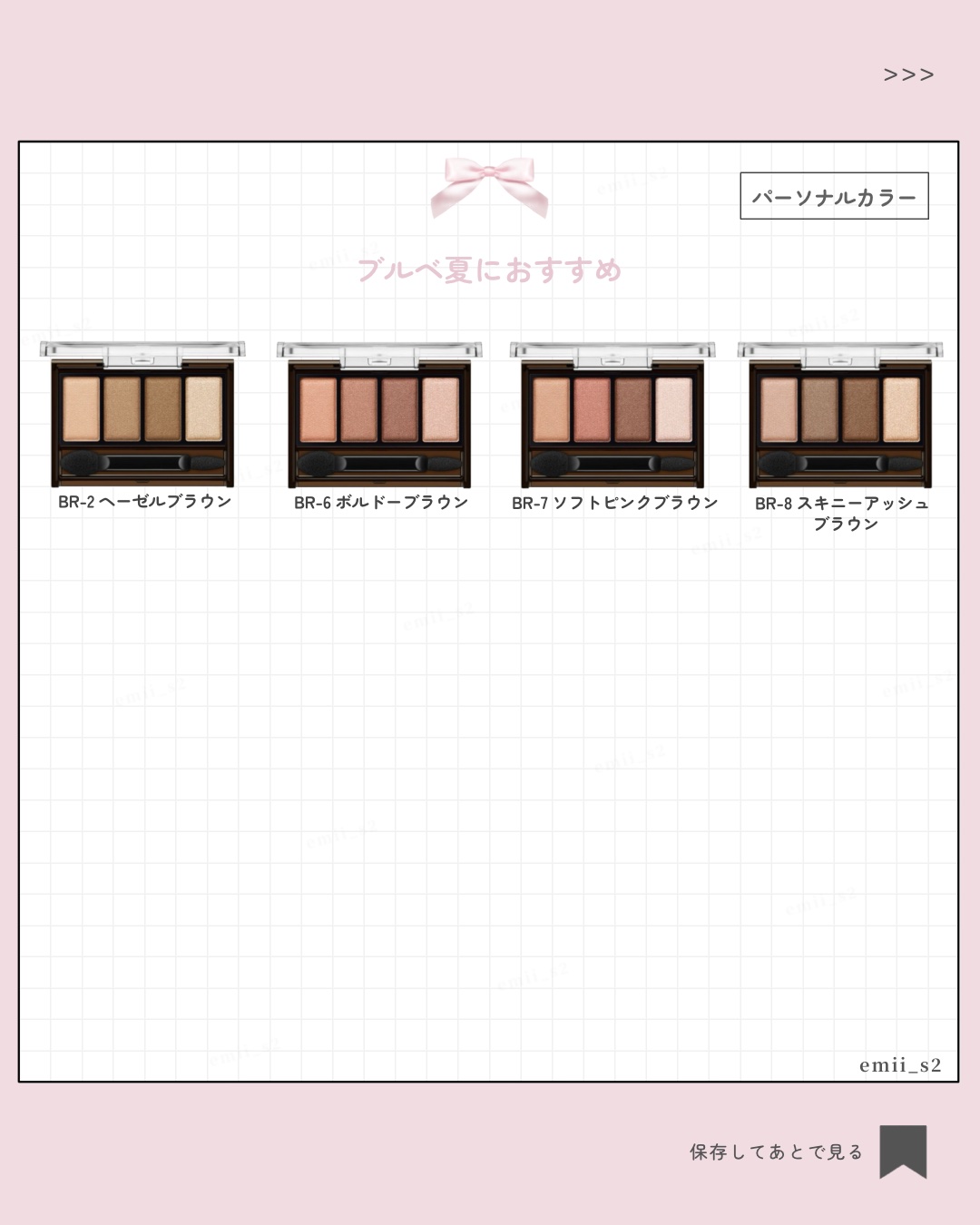 KATEの低彩度の4色ベージュパレットが今バズっています🩷 『締め色が苦手💦』 『ベージュを使いたいけどくすんだり暗くなってしまう😔』って方必見👀✨️ このパレットは明るくふんわりと発色します🩷 お近くのドラッグストアでも手に入るのでぜひチェックしてみてください🌈 全てのカラーをパーソナルカラー仕分けしてみましたのでぜひ保存して参考にしてみてください!