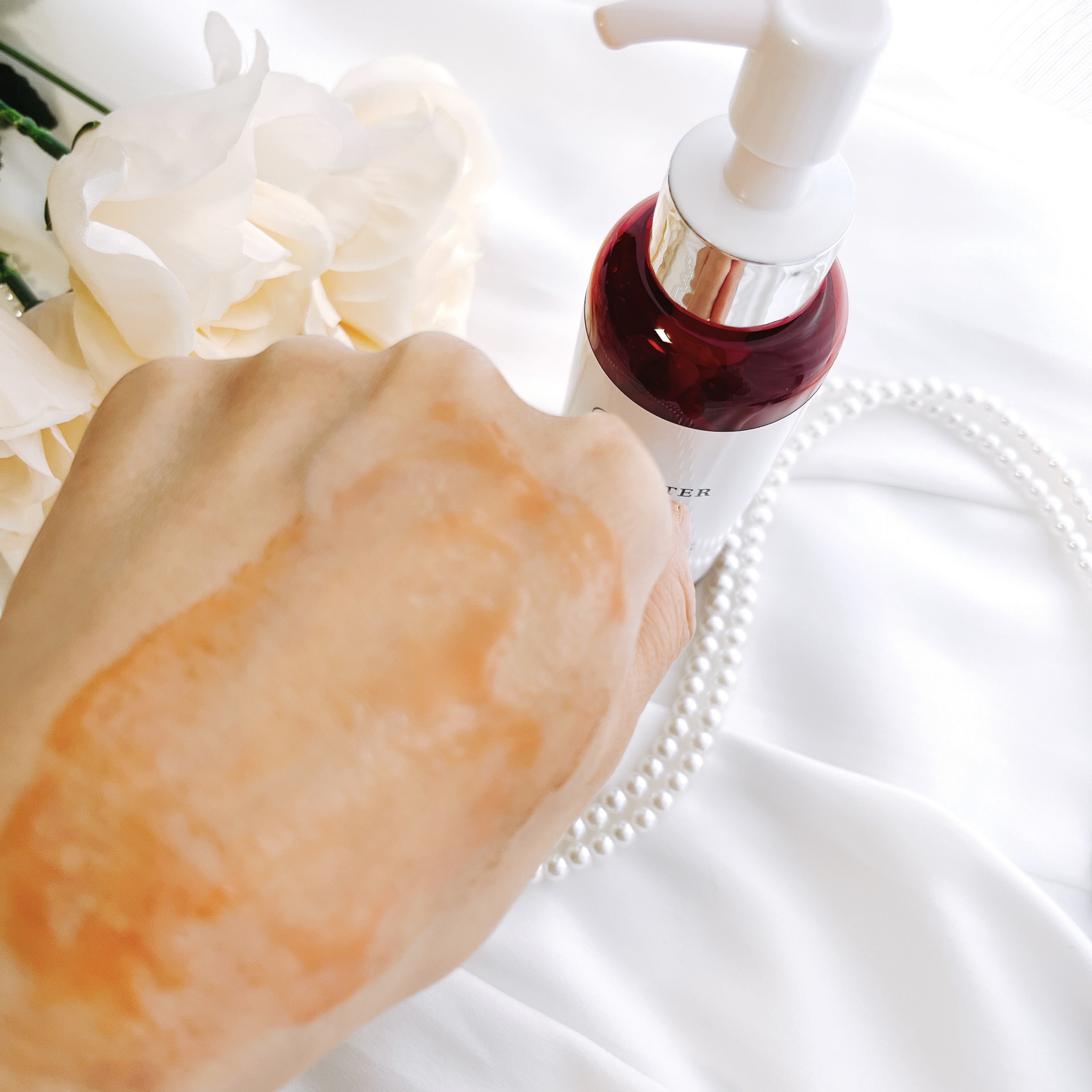 レチノールで洗う新世代のリキッド状クレンジング✨ 美肌力を高める「アスタキサンチン」「トマト果実エキス」「クチナシ果実エキス」「シソ葉エキス」「ビワ葉エキス」が配合されていて、鮮やかな赤い色をしています。 つっぱりやヒリつきもなく、使いごこちはマイルド。 毛穴や角栓にまでアプローチしてくれて、肌がつるんとなめらかに感じるのが嬉しいです。 ローズとゼラニウムがほのかに香って、クレンジングしながらリラックスできています。