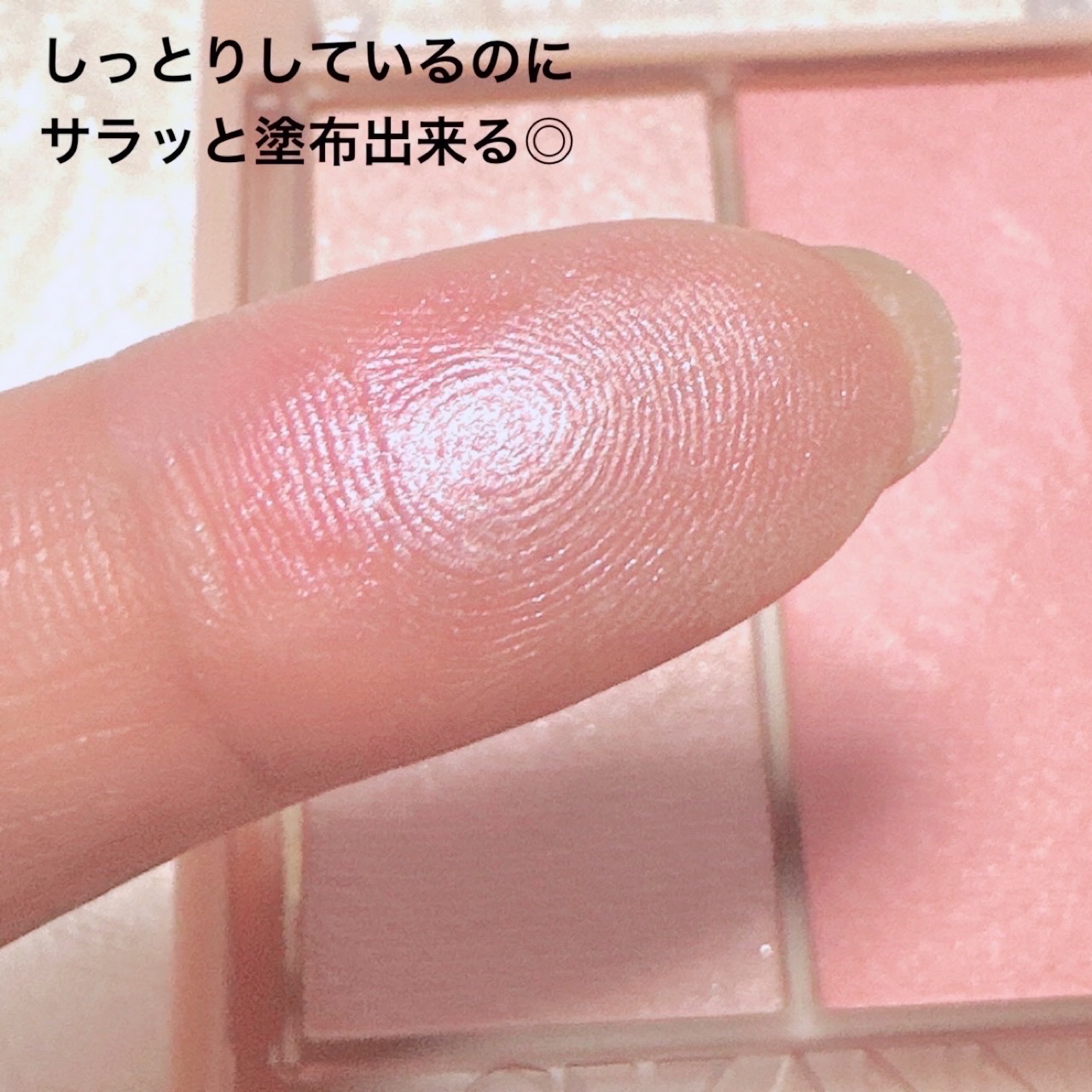 バブみミルク感溢れるふわチーク。青みピンク白みピンクのチークは1つ持っていると便利◎ 毛穴にフィルターをかけてくれる感じも良き◎ 白みがかったミルキーなピンクカラー♡ しっとりとしたマットな粉質で、白みもありつつ血色感をふわっとプラスし、毛穴をぼかして肌をきれいに見せてくれるチーク。 多幸感いっぱいのピュアピンク♡ グロウタイプでほんのりツヤが出るものの、クルクルッと混ぜると苺ミルクのようなカラーでバブみ感が出せる可愛いカラー🍓