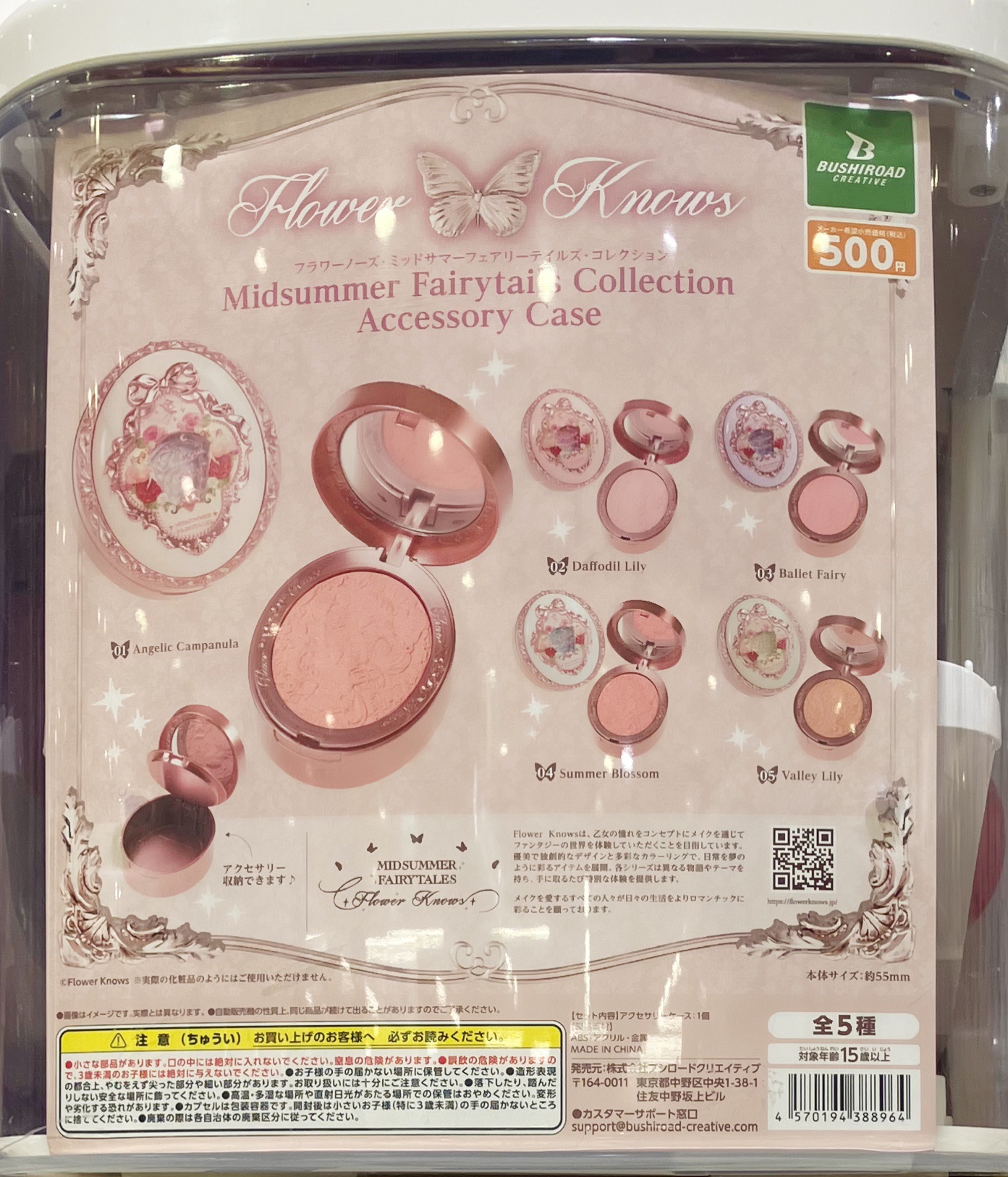 Flower Knows ミッドサマーフェアリーテイルズコレクションのベルベットチークブラッシュがアクセサリーケースに!💍 本物と同じ5色展開。 01 #エンジェリックカンパニュラ Angelic Campanula 02 #ダファディルリリー Daffodil Lily 03 #バレエフェアリー Ballet Fairy 04 #サマーブロッサム Summer Blossom 05 #ヴァリーリリー Valley Lily 設置店舗はブシロードクリエイティブさんの1/24の公式X投稿で確認できます!